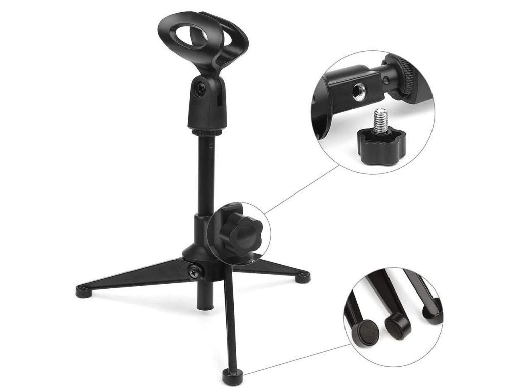 Stolný mikrofónny stojan vhodný pre živé rádiové vysielanie, nahrávanie dabingu alebo tvorbu originálnych videí na váš Youtube kanál. Na mikrofónny držiak umiestnite všetky typy mikrofónov do váhy až 1,5 kg, možno s ním otáčať o 360°. Ľahká a odolná hliníková konštrukcia vám umožní jednoduché uskladnenie či premiestnenie stojana na akékoľvek miesto vo vašom domácom štúdiu.