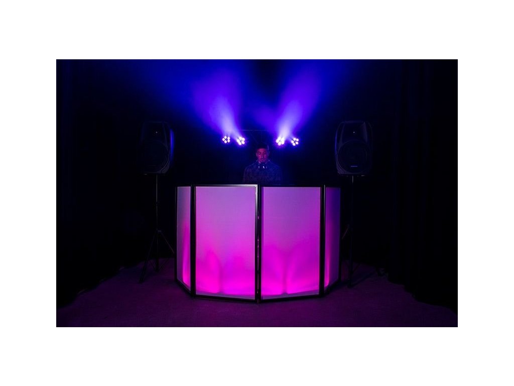 Paraván Event Facade 2 B je vyrobený z odolných, ale ľahkých čiernych kovových rámov a je navrhnutý tak, aby hladko spájal funkčnosť a estetiku. Inovatívne odnímateľné závesy a rámy sa bez námahy rozložia, čo zvyšuje prenosnosť paravánu a pohodlie pri skladovaní. Súčasťou balenia je biela aj čierna odnímateľná nehorľavá krycia tkanina, ktorá umožňuje vytvárať nápadné čierne alebo biele dekorácie. Pri použití bielej krycej tkaniny je možné za paraván umiestniť osvetlenie a vytvoriť tak vzrušujúcu atmosféru meniacej sa farby (osvetlenie sa predáva samostatne).