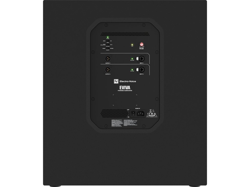 Robustný 18" subwoofer z preglejky je vybavený 1000 W zosilňovačom s 2-kanálovým analógovým vstupom. Intuitívny ovládací panel obsahuje gombík na nastavenie úrovne a prepínače na zmenu režimu medzi MUSIC a LIVE, low pass medzi 100 Hz EVIVA 12P/15P a 150 Hz a polaritu medzi NORMAL a REVERSE. Subwoofer je napájaný cez sieťový vstup IEC s automatickým prepínaním univerzálneho sieťového napätia 100 V ~ 240 V.