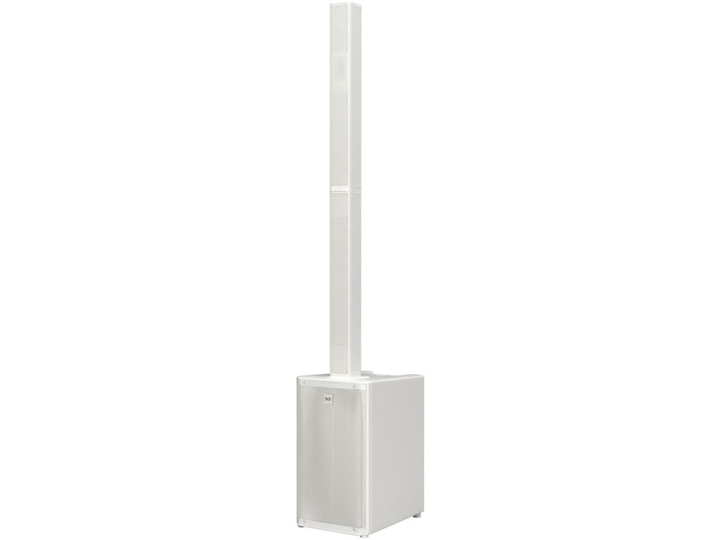 Neodymový kompresný driver (1,75" v.c., Kapton kopula) s vlnovodom True Resistive Waveguide (TRW) pre bezrezonančné zaťaženie a konštantné pokrytie 120° x 40°. Predné vyžarovanie sústavy 12x 3" neodymových meničov v kombinácii s centrovaným vlnovodom zaisťuje vyváženú odozvu bodového zdroja. 12" woofer RCF poskytuje hlboké, kontrolované nízke frekvencie, ideálne pre hudbu s výraznými basmi a energické vystúpenia.