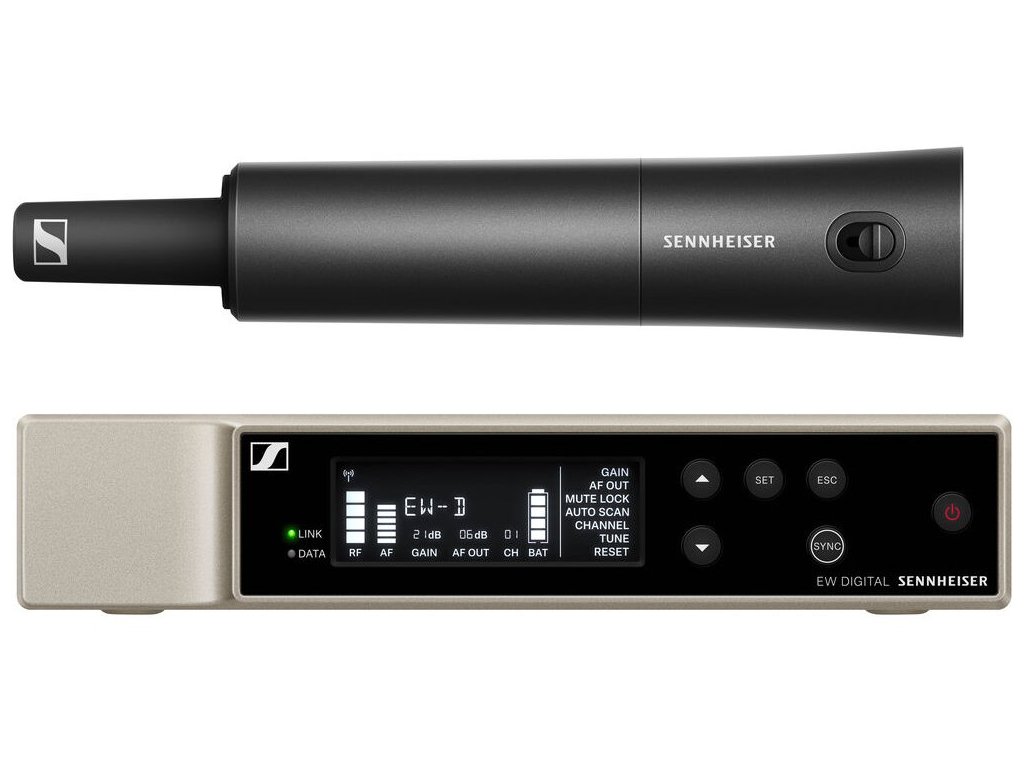 Bezdrôtová digitálna mikrofónna sada rackového prijímača a ručného vysielača (bez mikrofónnej hlavy). Ručný vysielač s možnosťou inštalácie akejkoľvek mikrofónnej hlavy Sennheiser MM je vybavený prepínačom MUTE pre možnosť krátkodobého vypnutia mikrofónu. Na vysielači nie sú okrem zapínania žiadne ďalšie ovládacie prvky, všetky parametre sa nastavujú na prijímači alebo z mobilu či tabletu v aplikácii Smart Assist.