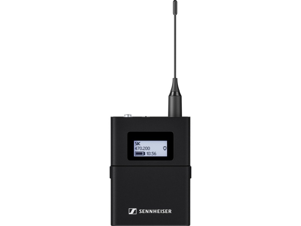 Sennheiser EW-DX SK / SKM-S Base Set je univerzálny dvojitý digitálny bezdrôtový systém s bodypackom a ručným vysielačom. Dodáva sa bez mikrofónov. Ručný vysielač kompatibilný s mikrofónnymi hlavicami MMD, MME, MMK, KK a MM je vybavený prepínačom MUTE pre možnosť krátkodobého vypnutia mikrofónu. Bodypack vysielač umožňuje použitie všetkých klopových a hlavových mikrofónov s konektorom jack 3,5 EW. Na vysielači s e-ink displejom si môžete nastaviť frekvenciu basového filtra (high-pass) a základné nastavenie citlivosti (trim), všetky ostatné parametre sa nastavujú na prijímači alebo z mobilu či tabletu v aplikácii Smart Assist.