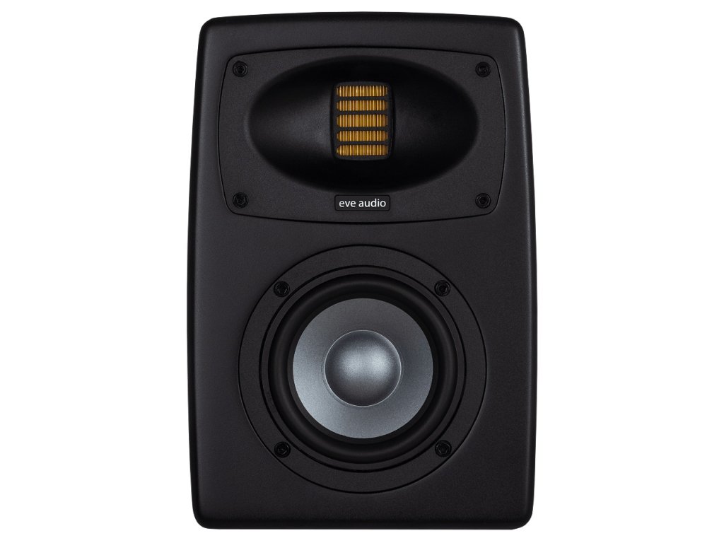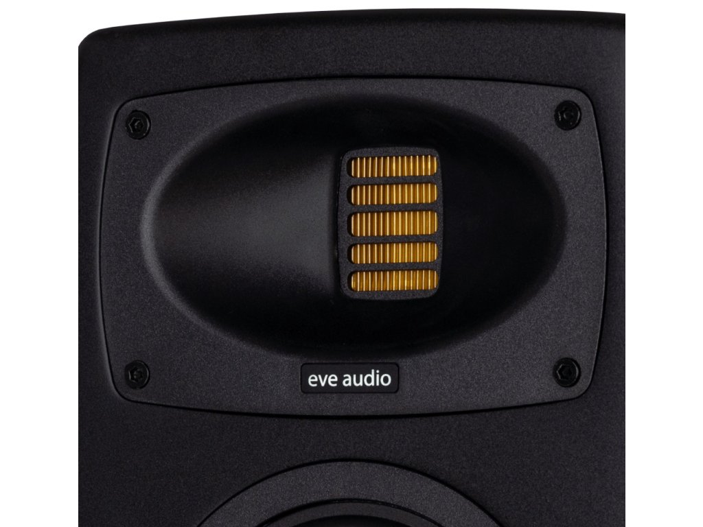 - Predné viacfarebné logo „eve audio“ poskytuje okamžitú vizuálnu spätnú väzbu o stave systému, signalizuje clipping, zobrazuje priebeh aktualizácie firmvéru a ďalšie prevádzkové stavy