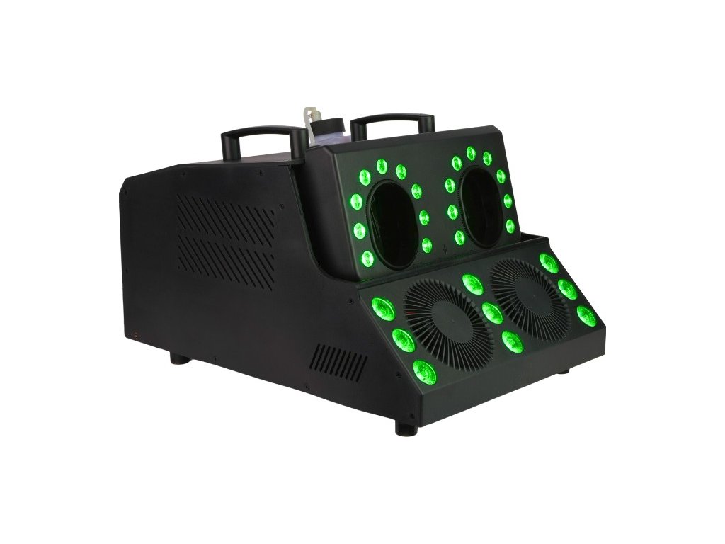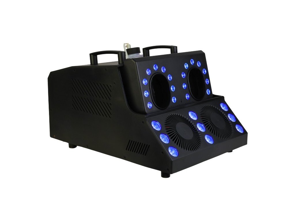 Light4Me FBL Storm je profesionálny výrobník hmly a bublín s LED efektom, ideálny pre každú akciu. Vďaka osemnástim 3wattovým diódam RGB LED (3v1) a deviatim 3wattovým diódam RGBWAUV LED (6v1) ponúka zariadenie úžasné svetelné efekty, ktoré pritiahnu pozornosť každého hosťa a dokonale podsvietia rýchlo vytvárané bubliny a dym. Navyše stroboskopický efekt s nastaviteľnou rýchlosťou ďalej obohacuje atmosféru a vytvára dynamické a prekvapivé momenty. Predstavte si, aké skvele by vyzerala vaša narodeninová oslava alebo svadba s týmto zariadením
