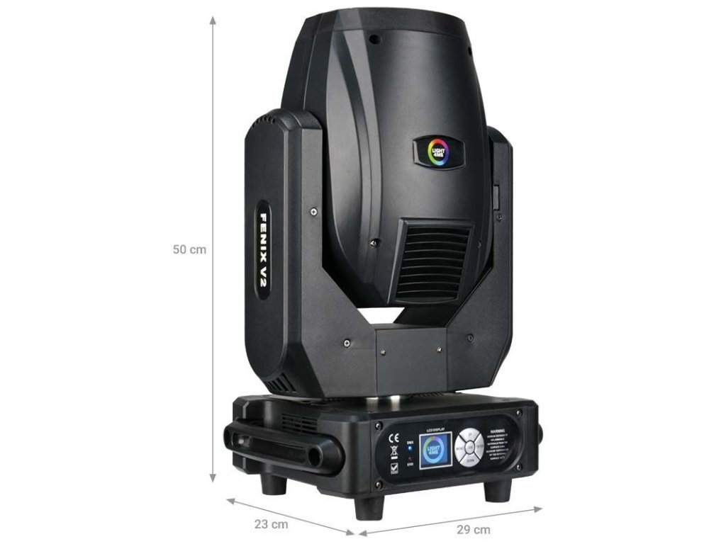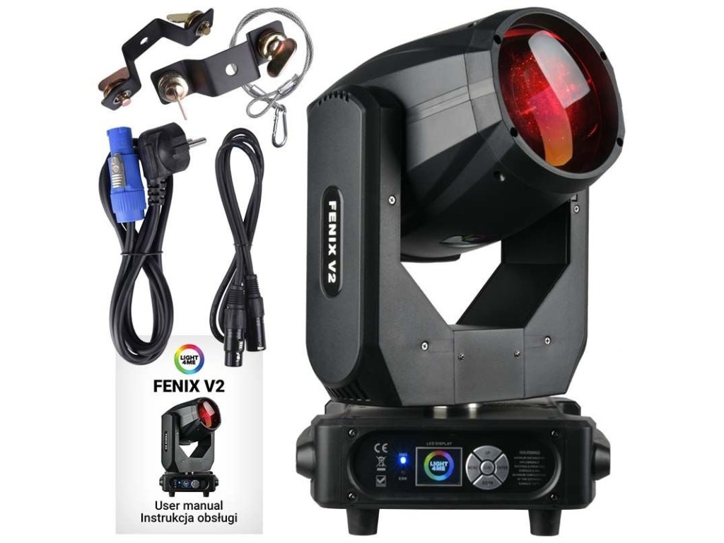 Light4Me Fenix V2 je profesionálny lúčový javiskový reflektor v podobe pohyblivej hlavy, ktorej zdrojom svetla je výkonná výbojka s výkonom 230 wattov a farebnou teplotou 7400K. Vďaka vysokému jasu je zariadenie vynikajúce na osvetlenie pódií počas galavečerov, koncertov a vystúpení, v komunitných centrách aj v tanečných kluboch a diskotékach.