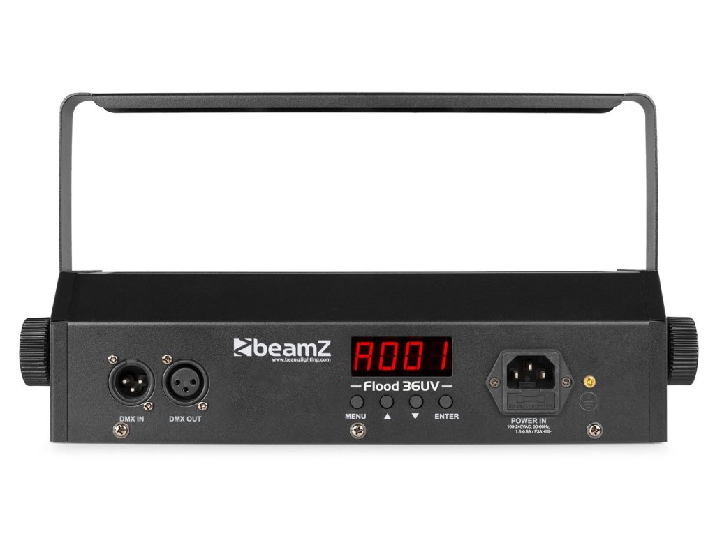 Tento UV svetelný efekt je vybavený 36 vysoko výkonnými 3W UV LED diódami, ktoré zaisťujú silný a rovnomerný výstup. Flood36UV ponúka pokročilé možnosti ovládania, vrátane plnej integrácie DMX, funkcie Sound-to-Light (aktivácia zvukom pomocou vstavaného mikrofónu) a režimu Master/Slave pre synchronizáciu s inými zariadeniami. Vďaka týmto vlastnostiam ho možno ľahko začleniť do komplexných svetelných systémov a prispôsobiť špecifickým požiadavkám každej show. Pre jednoduché nastavenie a ovládanie je vybavený ovládacím panelom s LED displejom.