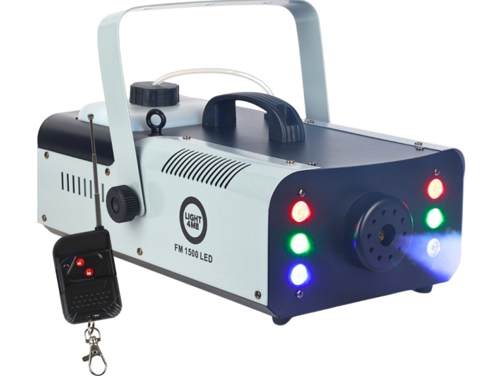 Vstavané RGB LED diódy (2 červené, 2 zelené, 2 modré) dodávajú každej šou úžasnú atmosféru a dokonale zvýrazňujú vyfukovanú hmlu.Kryt z odolného železa v elegantnej čierno-striebornej farbe pôsobí profesionálne a zaručuje dlhú životnosť. Či už pripravujete firemný večierok, živý koncert alebo súkromnú akciu – Light4Me FM 1500 LED je voľbou práve pre vás.