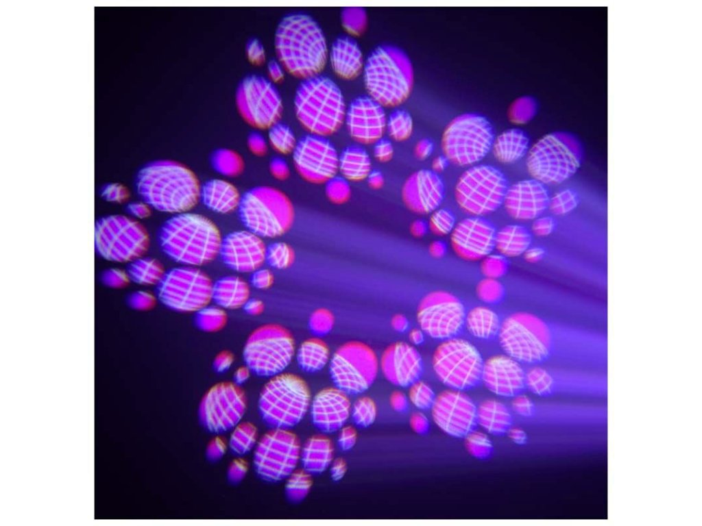 - Otočné gobo koleso: 6+biele (otvorené), obojsmerne nastaviteľná rýchlosť