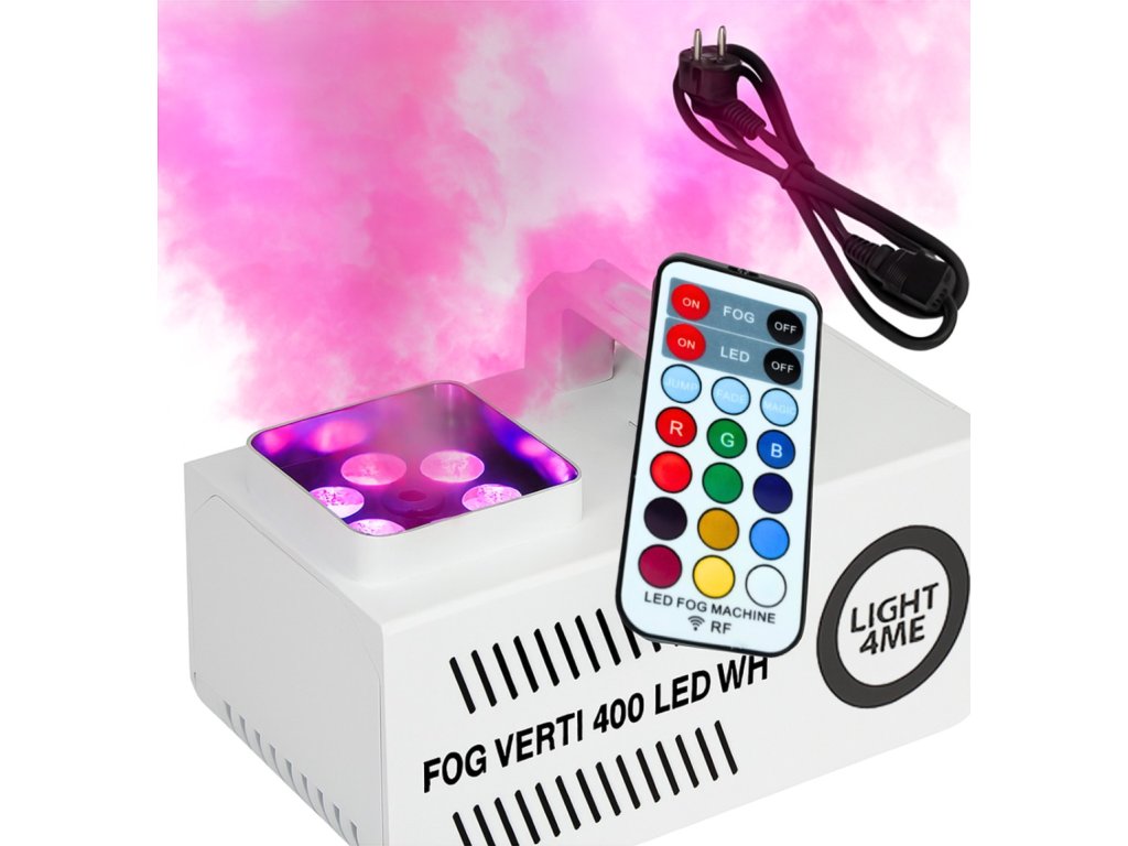 Light4Me Fog Verti 400 LED WH je malý vertikálny výrobník hmly, ktorý sa skvele hodí ako na domáce oslavy, tak na profesionálne využitie. Vďaka kompaktným rozmerom a nízkej hmotnosti je prístroj neuveriteľne ľahko prenosný a umiestniteľný na ľubovoľné miesto. Vstavané svetelné efekty – založené na systéme šiestich LED diód RGBW (4v1) s výkonom 1 W každá – ako sú Jump, Fade a Magic, dodajú každej udalosti jedinečnú atmosféru. Bez ohľadu na to, či organizujete malý večierok doma, alebo väčšiu akciu pod holým nebom, Light4Me Fog Verti 400 LED WH na vašich hostí zaručene zapôsobí.