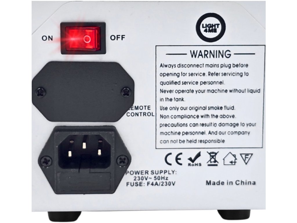 Generátor hmly sa vyznačuje mimoriadnym výkonom, keď produkuje až 50 m³ hmly za minútu pri spotrebe energie iba 400 W. Vďaka krátkej dobe nahrievania, ktorá predstavuje približne 2,5 minúty, je výrobník pripravený na použitie takmer okamžite po zapnutí. Nádržka na kvapalinu s objemom 0,25 litra a indikátor hladiny kvapaliny zaisťujú dlhú dobu prevádzky bez nutnosti častého dopĺňania a bezpečnosť pri používaní. Je to ideálne riešenie pre DJov, organizátorov akcií a majiteľov klubov, ktorí potrebujú spoľahlivé vybavenie na vytváranie úžasných efektov.