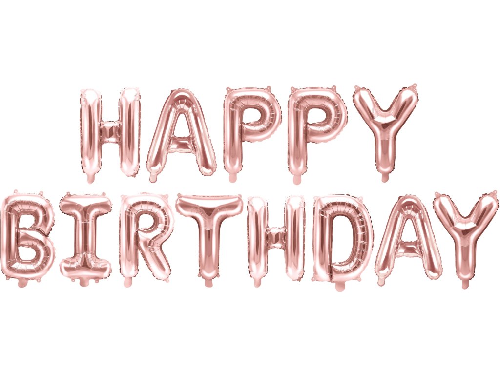 Fóliový balón Happy Birthday 340x35cm rose zlatý