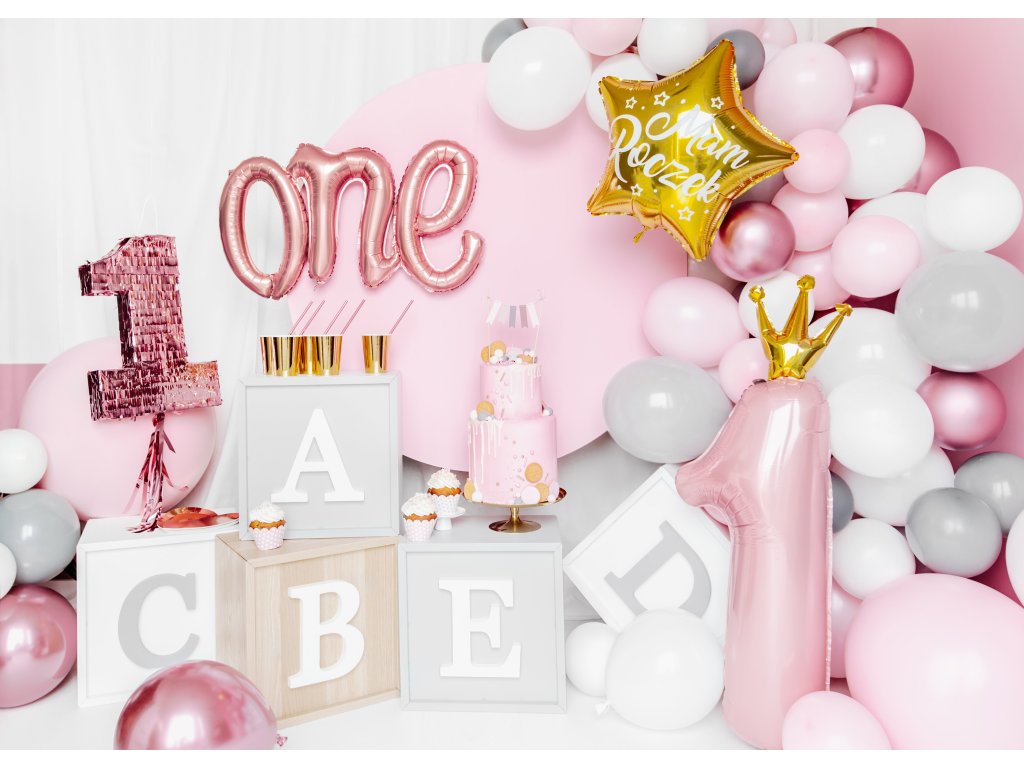 Balón zo saténovej fólie Jeden v ružovo zlatej farbe, veľkosť približne 66 x 37 cm (26 x 14,5'').