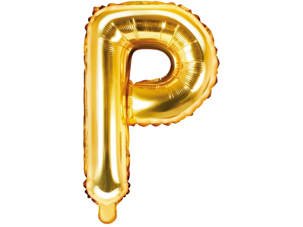 Metalický fóliový balónik písmeno ''P'', zlatý, veľkosť pred nafúknutím cca 40 cm, výška cca 35 cm. Nafúknite vzduchom.Dodatočné parametre