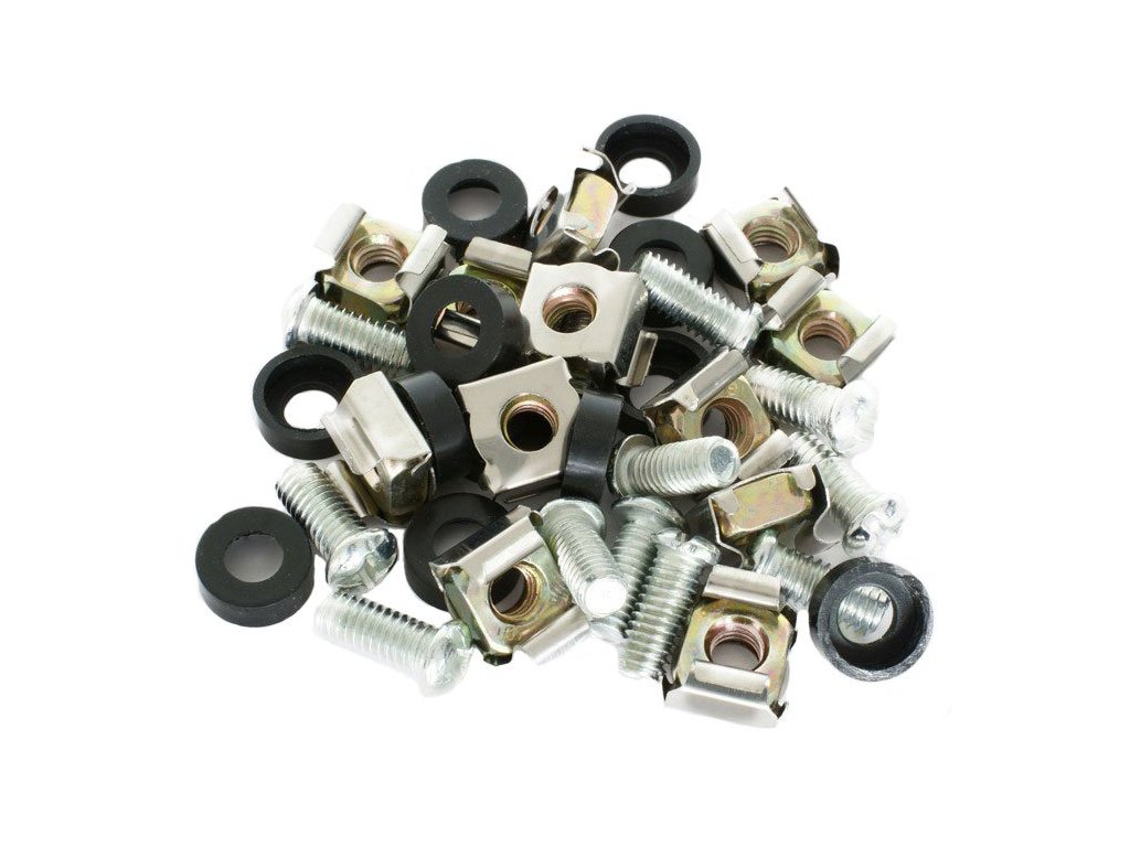 19" Montážna sada matíc, skrutiek a podložiek M6, každá po 12 dieloch.