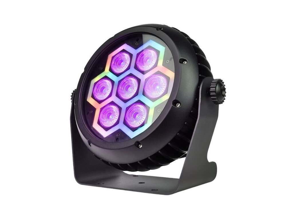 - Svetelný zdroj: 7x10W RGBW LED (4v1) + 39x0,2W RGB SMD LED