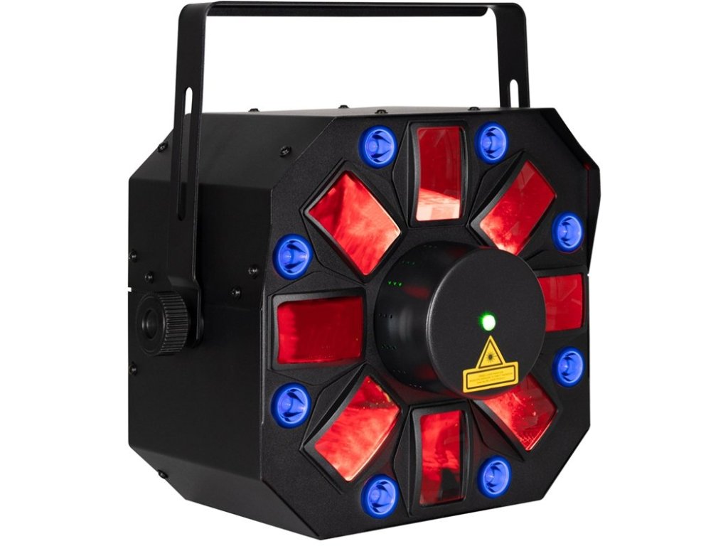 - 3-v-1 osvetlenie pre tanečné párty: LED Moonflower, UV-Wash a Laserové efekty