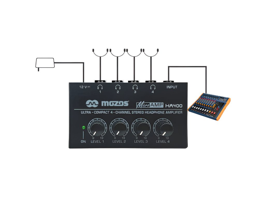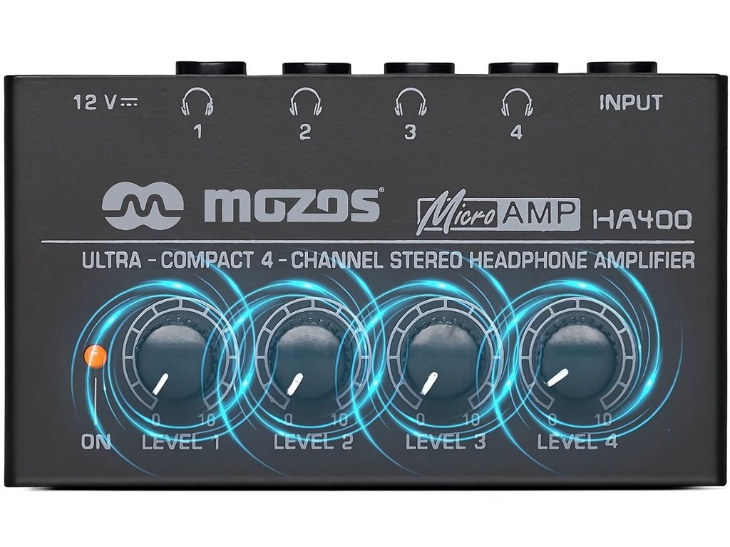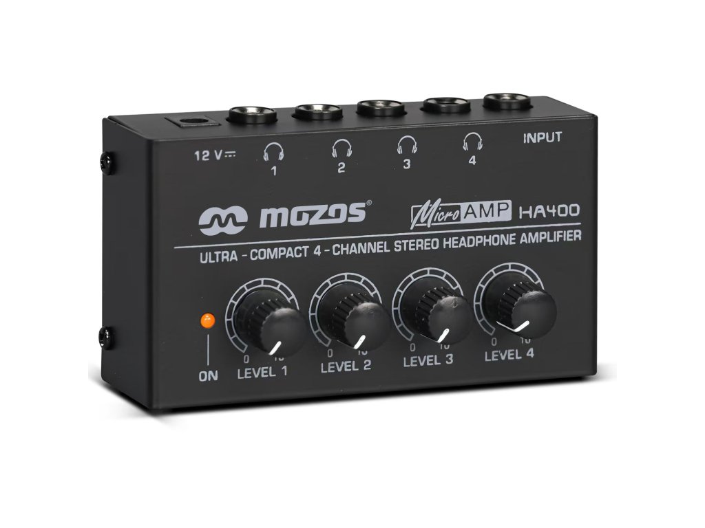 Mozos HA-400 je praktický štvor kanálový slúchadlový zosilňovač, navrhnutý pre situácie, kedy potrebujete zdieľať zvukový signál do viacerých párov slúchadiel súčasne. Je ideálnou voľbou pre štúdiovú spoluprácu, spoločné cvičenie hudobných kapiel alebo akékoľvek iné scenáre vyžadujúce individuálny posluch.