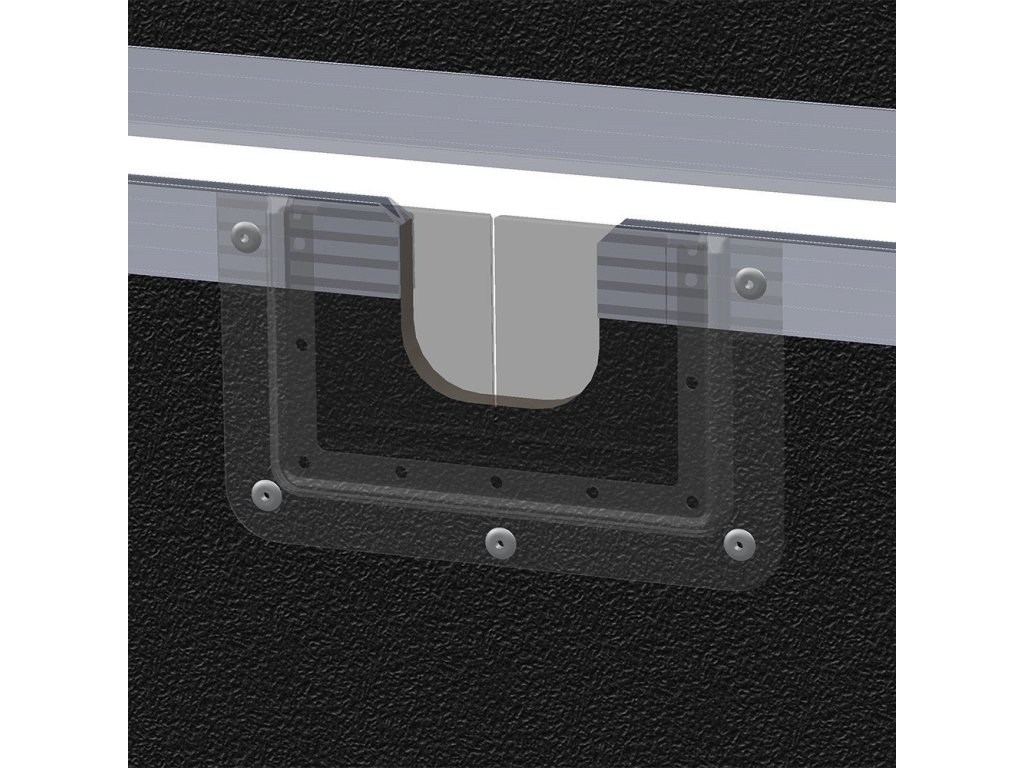 Káblová priechodka v U-miske. Zapustená miska s priečnou gumovou prírubou a drážkami pre priechod konektorov a káblov. Dodáva sa v nerezanom stave. Pre montáž pod alebo nad umiestnenie veka.