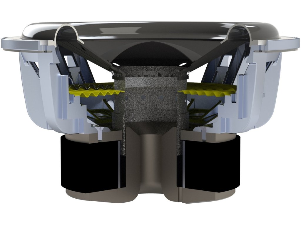 - 12" basový reproduktor smerovaný dopredu s membránou z celulózových vlákien potiahnutých polymérom