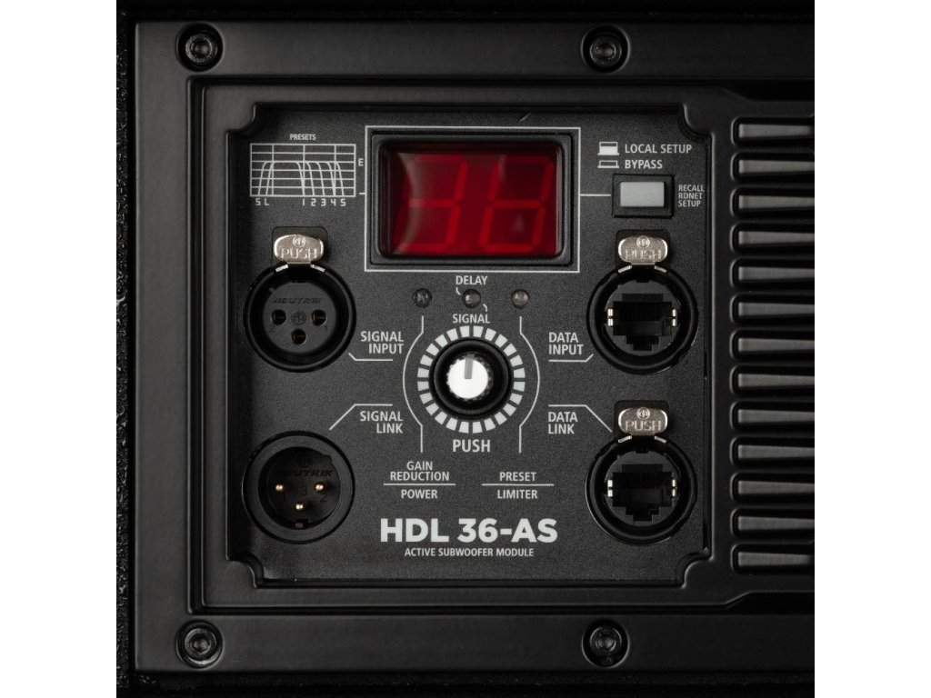 HDL 36-AS je ideálnym závesným basovým doplnkom k systému HDL 28-A. Je vybavený jednou 4,0" kmitacou cievkou a 15" neodymovým wooferom, ktorý zvláda 135 dB SPL Max od 40 Hz do 140 Hz s maximálnou linearitou a nízkym skreslením. Vstavaný zosilňovač triedy D s výkonom 3200 W zaisťuje vynikajúcu čistotu prehrávania a maximálny SPL až 135 decibelov. Vďaka kompatibilite so sieťou RDNet - diaľkovým monitorovaním a ovládaním je HDL 36-AS súčasťou profesionálneho systému HDL