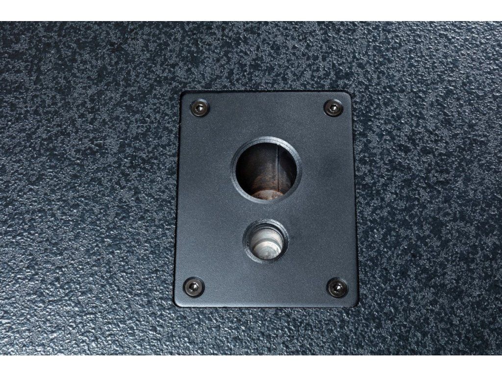 Spoľahlivosť v náročnej prevádzke zaisťuje vstavaná ochrana proti prehriatiu, prebudeniu a signálovým špičkám. Konštrukcia z 18 mm preglejky s pevnou oceľovou mriežkou odolá transportu a intenzívnemu používaniu. Na jednoduchú manipuláciu sú k dispozícii štyri zapustené rukoväte. M20/36 mm príruba umožňuje montáž satelitných reproboxov a závity pre kolieska (voliteľné príslušenstvo) uľahčujú prepravu.