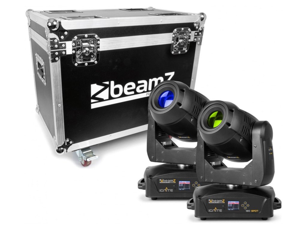 Sada dvojice LED otočných hlavíc BeamZ Professional IGNITE180 v case, ktorý je vhodný na skladovanie aj prepravu uvedených svetelných efektov.