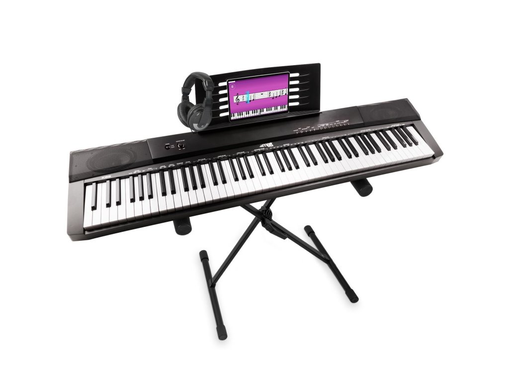 Výhodný set digitálneho piana s 88 polovyváženými klávesami Max KB6, skladacieho stojana na klávesy Vonyx KBS01 a slúchadiel Vonyx SH120.