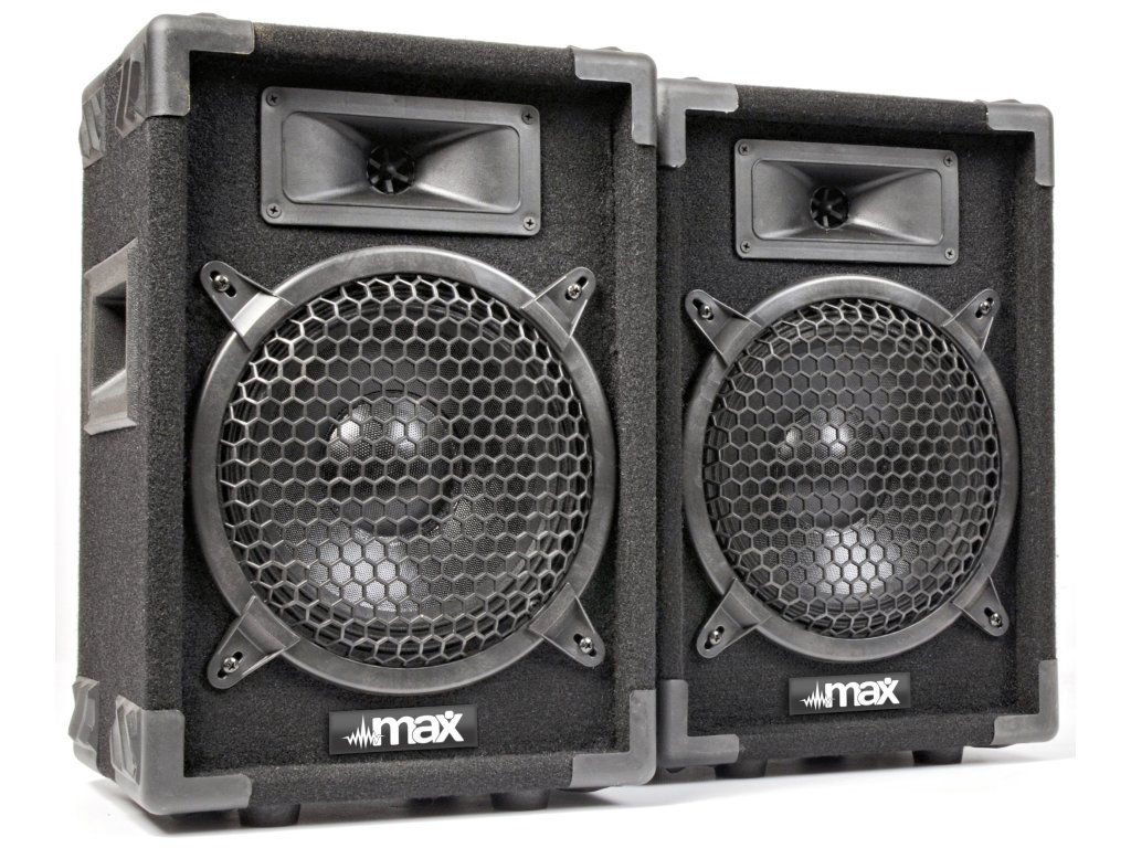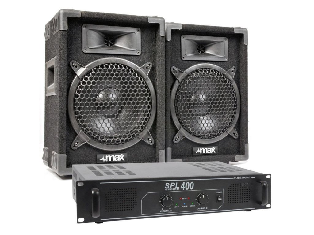 Výhodný set reproboxov Max MAX8 8" 400W, zosilňovača Skytec SPL 400 2x200W a reproduktorového kábla Power Dynamics RX30 10m.
