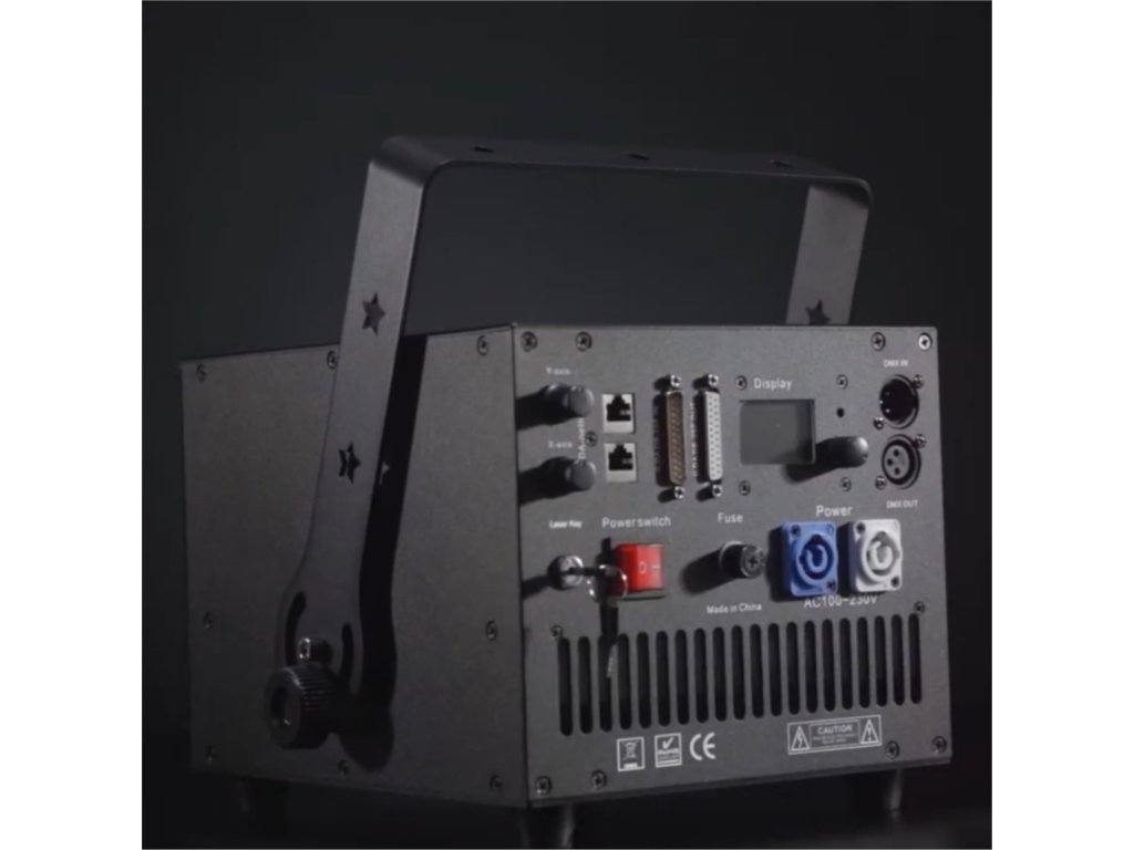 Zariadenie je vybavené aktívnym systémom chladenia a mechanizmom ochrany proti prehriatiu, čo zaručuje spoľahlivosť aj pri intenzívnom používaní. Zabezpečenie na kľúč, široký rozsah prevádzkových teplôt okolia a robustné hliníkové puzdro sú zárukou bezpečnosti a odolnosti v náročných scénických podmienkach. Konektory DMX typu XLR, PowerCon a tiež ILDA RJ45 a DB-25F umožňujú flexibilné prepojenie s akýmkoľvek profesionálnym vybavením.