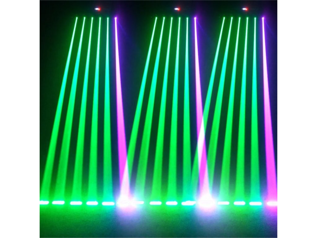 Lišta je vybavená 6 výkonnými svetelnými zdrojmi laserov v palete RGB a umožňuje vytvárať neuveriteľné farebné mixy a precízne svetelné vzory. Vďaka šiestim automatickým programom s nastaviteľnou rýchlosťou a dvom programom v zvukovom režime s nastaviteľnou citlivosťou mikrofónu môže zariadenie pracovať úplne automaticky alebo perfektne reagovať na rytmus hudby. Dvadsať efektov prebiehajúcich farieb s nastaviteľnou rýchlosťou, lineárny stmievač (0–100 %) a sedem statických farieb pre každý svetelný zdroj vám dávajú neprekonateľnú tvorivú slobodu. Vytvárajte svetelnú šou ako na svetových pódiách – a to bez zložitého ovládania.