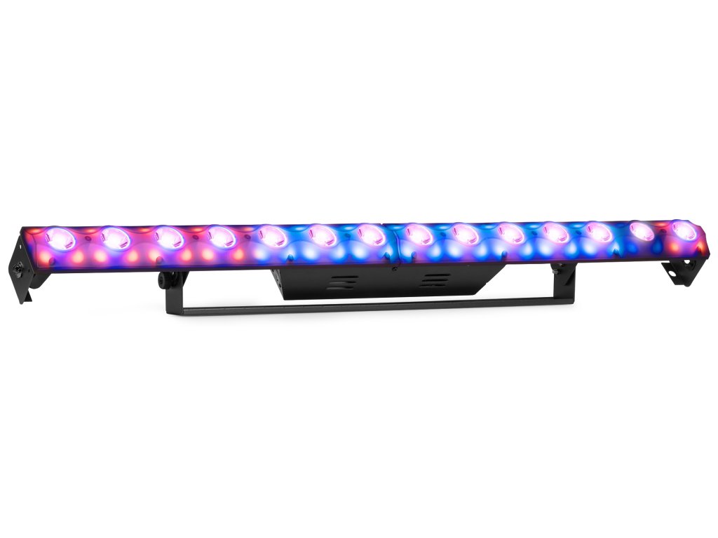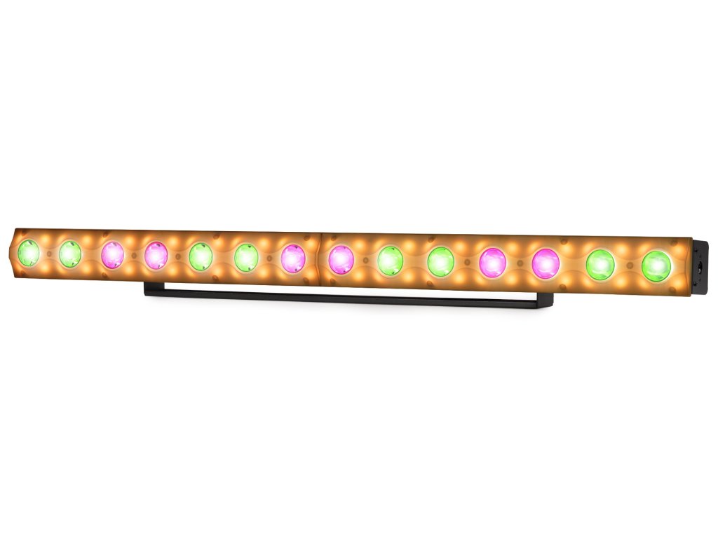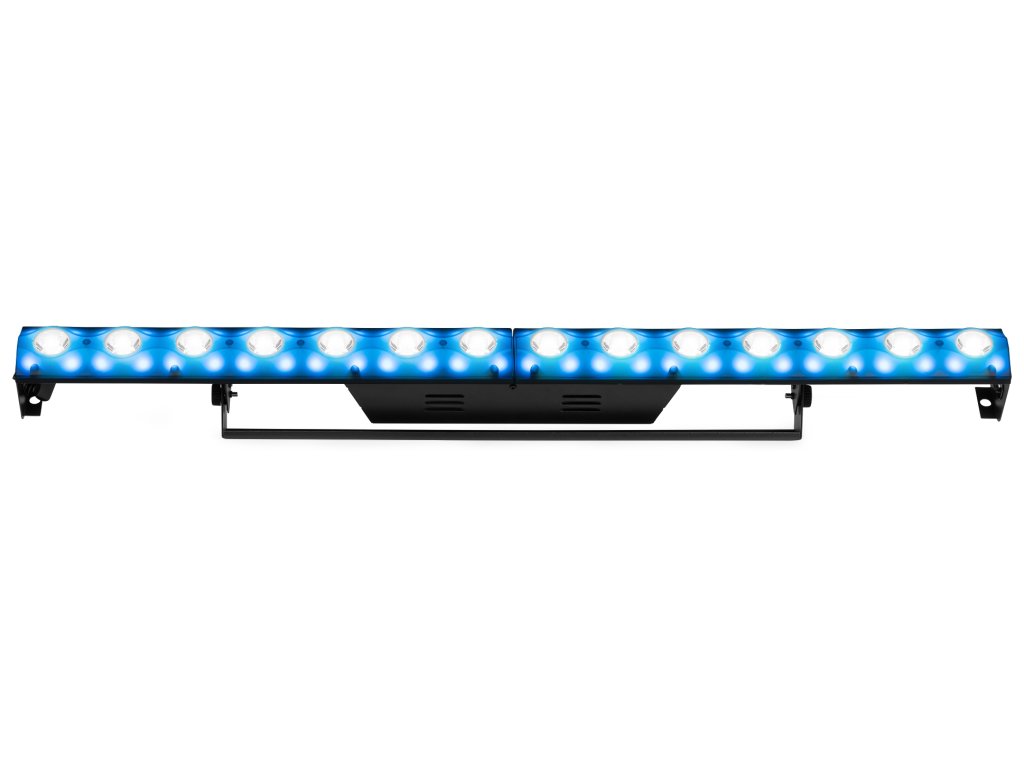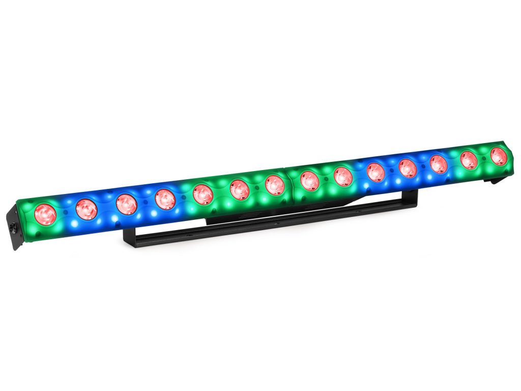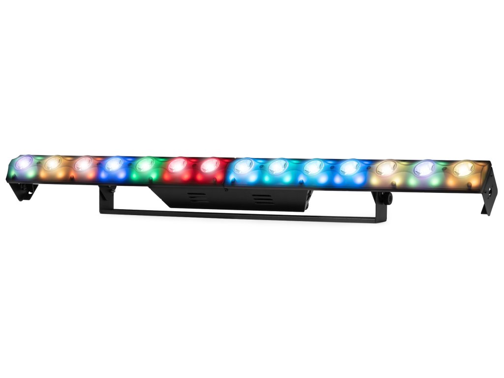 LCB14C je hybridný LED bar vybavený 14x 4W RGBW LED diódami a 56x SMD RGB LED diódami pre spektakulárny efekt podsvietenia pozadia. LED diódy je možné programovať po jednotlivých pixeloch pre ohromujúce sekvenčné efekty. Pri použití zariadenia v stand-alone režime sú k dispozícii predprogramované show, ktoré je možné spustiť automaticky alebo môžu byť aktivované zvukom. V režime RGB (pre podsvietenie pozadia) je tiež možné vytvoriť vlastnú kombináciu farieb. Vďaka IN/OUT napájacím konektorom môžete ľahko prepojiť viac jednotiek do jednej zásuvky.