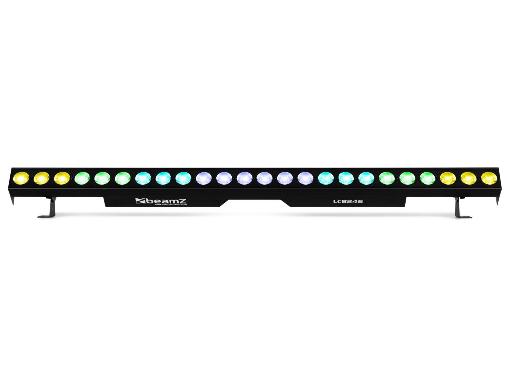 LCB246 je LED bar vybavený 24x 6W RGBAW-UV LED diódami. LED diódy sú rozdelené do 8 samostatne ovládateľných sekcií po 3 LED diódach. Pri použití LED baru v stand-alone režime môžete spustiť predprogramované show, ktoré sa budú prehrávať automaticky alebo môžu byť aktivované zvukom, vybrať si z prednastavených farebných maker alebo vytvoriť vlastnú zmes farieb v režime RGBAW-UV. Vďaka napájacím konektorom P-con (IN/OUT) môžete jednoducho prepojiť napájanie viacerých jednotiek do jednej zásuvky.