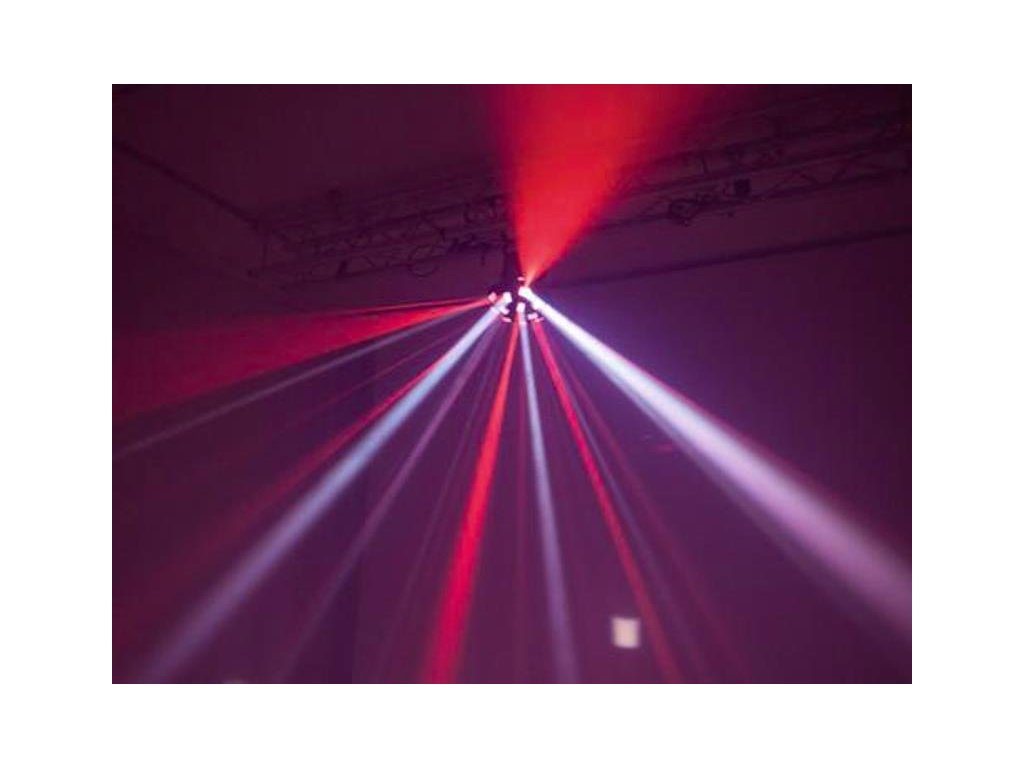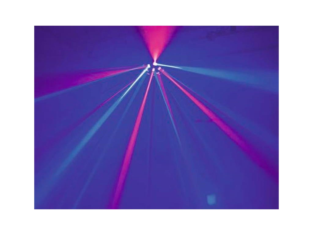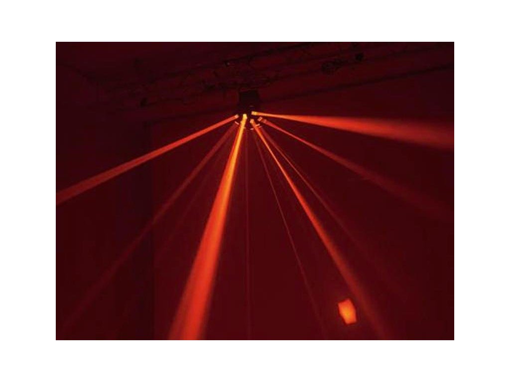 Klasický lúčový svetelný efekt so 6 jednofarebnými LED diódami. Zväzky farebných lúčov vykonávajú kruhové pohyby a menia smer do rytmu hudby. Automatický prevádzkový režim, možnosť zmeny rýchlosti bežiaceho programu, Strobo efekt s vlastným spínačom. Ovládanie zvukom pomocou zabudovaného mikrofónu s nastaviteľnou citlivosťou. Svetelný efekt je vybavený šiestimi výkonnými 3W LED diódami: červená, zelená, modrá, jantárová, biela a UV. Montážny držiak pre pevné inštalácie. Pre zvýraznenie lúčových efektov je vhodné doplniť efekt výrobníkom umelej hmly. Ideálne osvetlenie menších tanečných parketov, na párty a oslavy alebo pre mobilných DJov a hudobníkov.