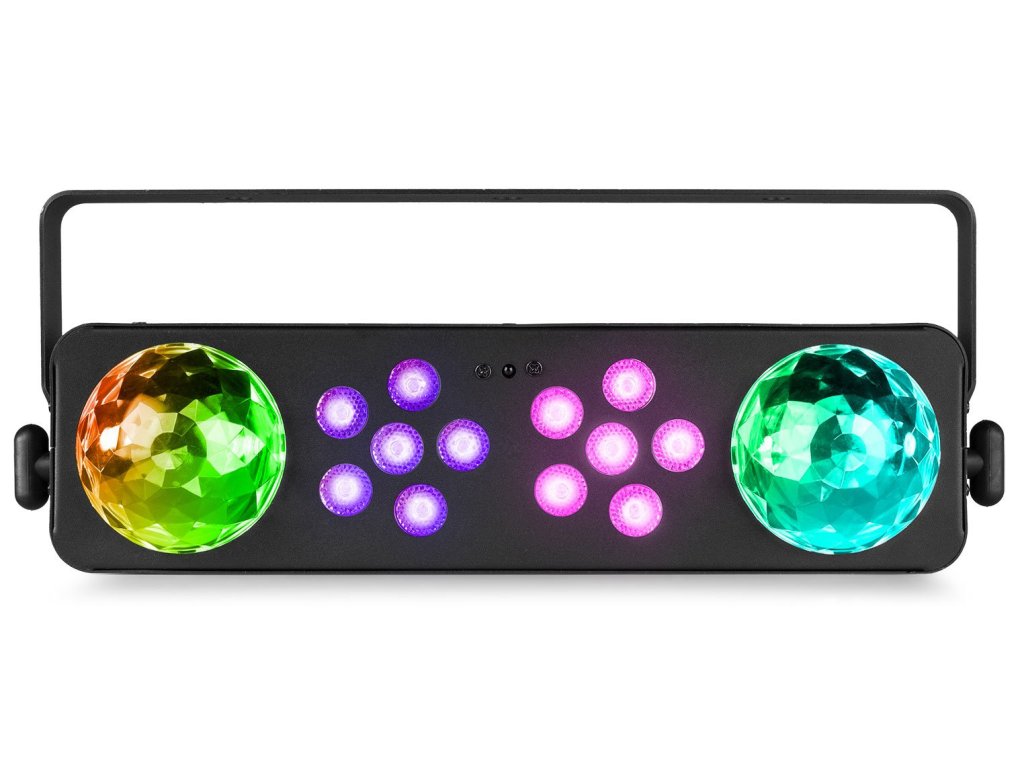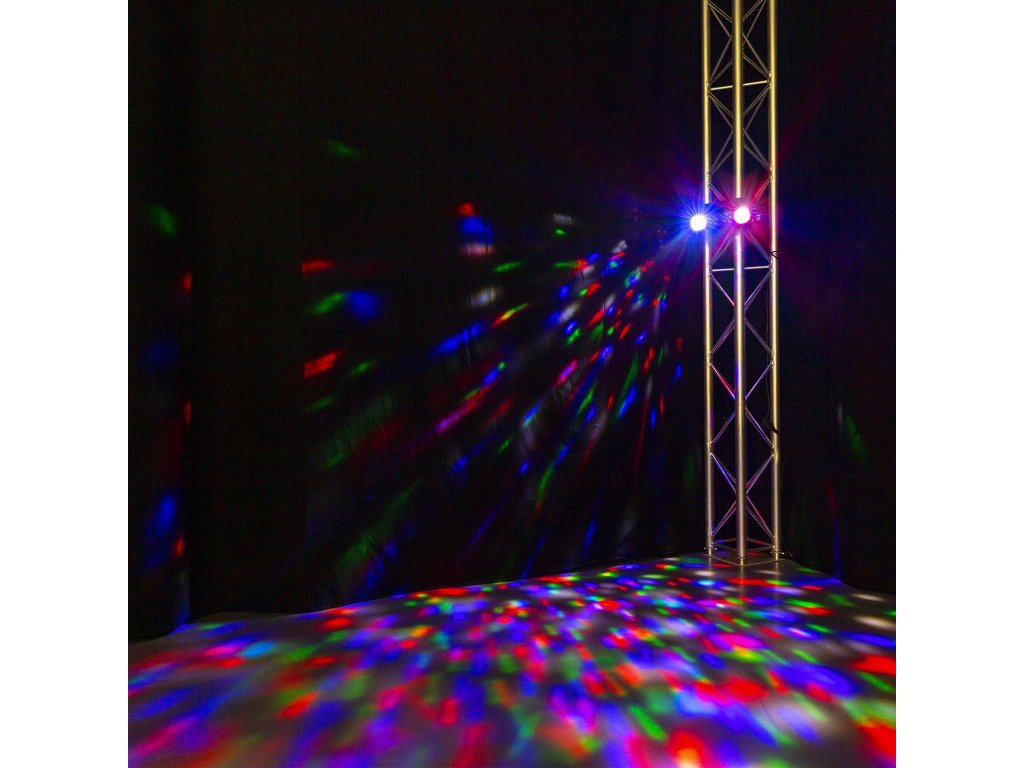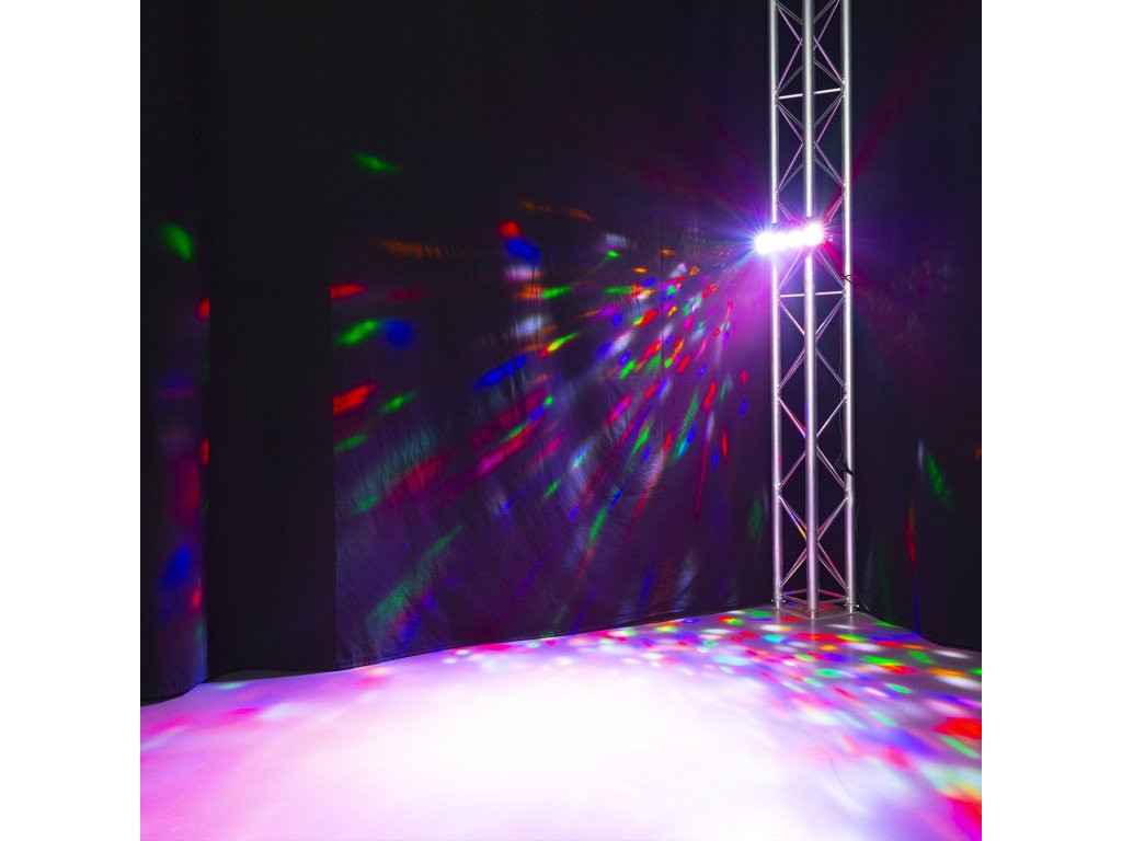 LightBox7 kombinuje 2x vysoko výkonné par svetlá a 2x moonflowers v jedinom svietidle pre pôsobivé a mnohostranné osvetlenie. Efekt je nabitý predprogramovanými show, vrátane zvukovo aktívnych režimov. A pre dynamickejšie efekty a použitie s väčšími osvetľovacími systémami je tu režim DMX, ktorý vám umožňuje ovládať každý vstavaný svetelný efekt, vďaka čomu je LightBox7 tiež veľmi vhodný pre show alebo akcie.