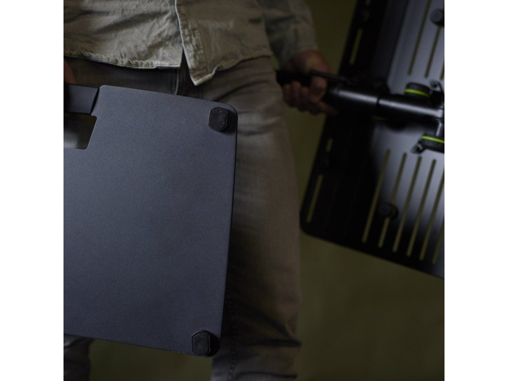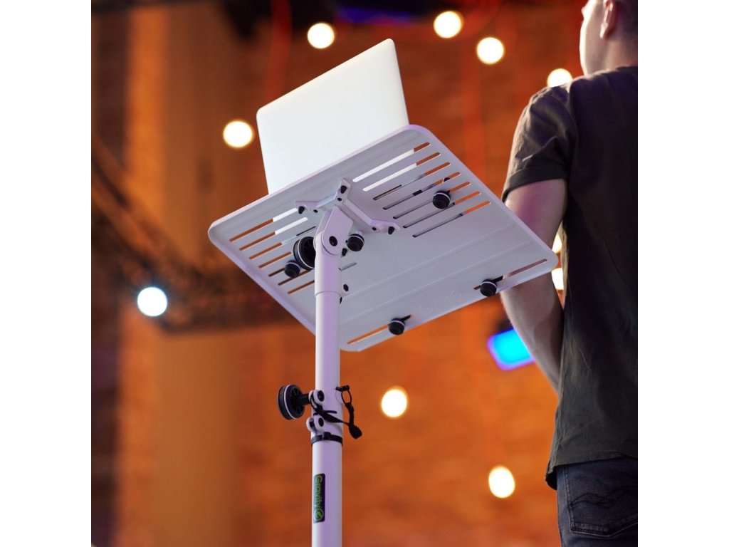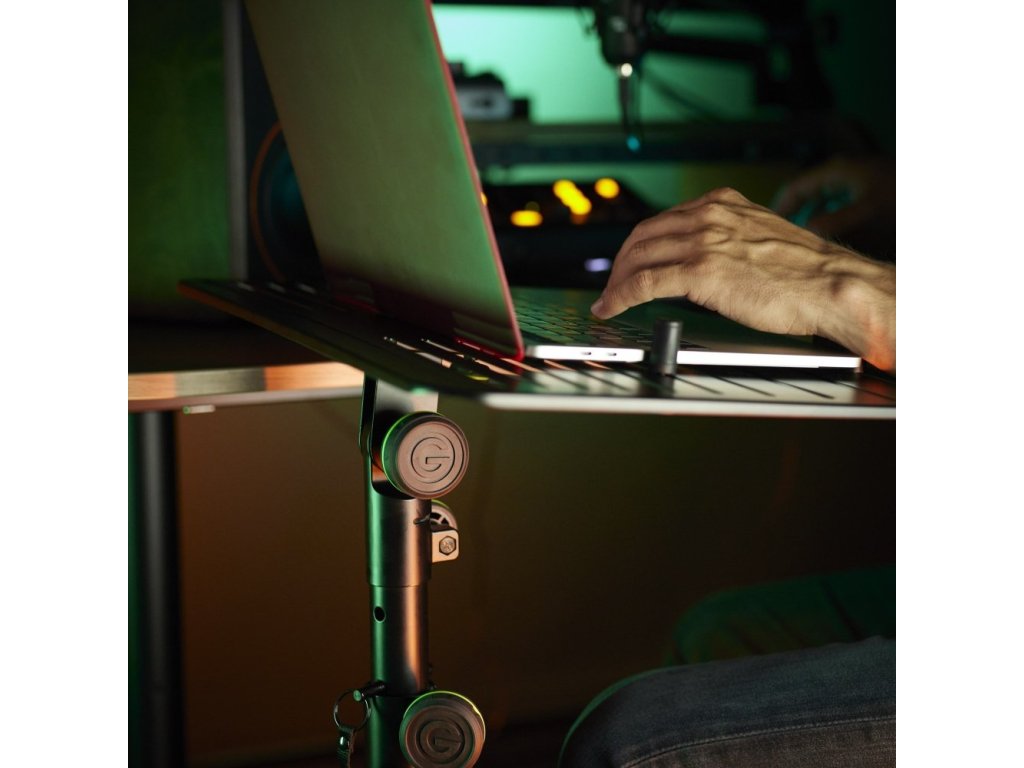 Umelci a štúdioví hudobníci dobre vedia, že musia hľadať miesto, kam umiestniť svoj notebook, tablet alebo centrálnu efektovú jednotku. Ale aj možnosť premiestniť pracovnú stanicu, keď pracujete doma, môže byť užitočná na zabezpečenie rýchlej a flexibilnej zmeny prostredia. Stojan na notebook LTS T 02 B od spoločnosti Gravity vám túto možnosť ponúka. Či už ste hudobník, technik, fotograf alebo pracovník v domácnosti, vďaka univerzálne použiteľnému, flexibilnému a veľmi stabilnému podstavcu sa už nemusíte starať o svoje pracovné vybavenie.