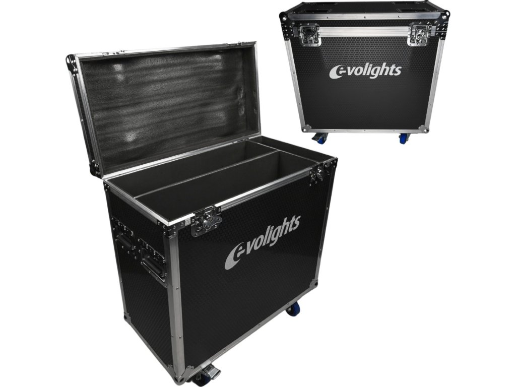 Evolights Lumen 7 kufor 2in1 je profesionálny a veľmi solídne vyrobený prepravný kufor pre dva retro scénické reflektory Lumen 7 alebo iné zariadenia s podobnými rozmermi. Kufor bol vyrobený zo silnej, 7mm preglejky natretej špeciálnou vodeodolnou farbou. Jeho hrany sú vystužené hliníkovými profilmi. Na rohoch sa nachádzajú guľové chrómované kryty, ktoré dodatočne spevňujú konštrukciu a chránia okolie kufra vďaka eliminácii ostrých hrán.