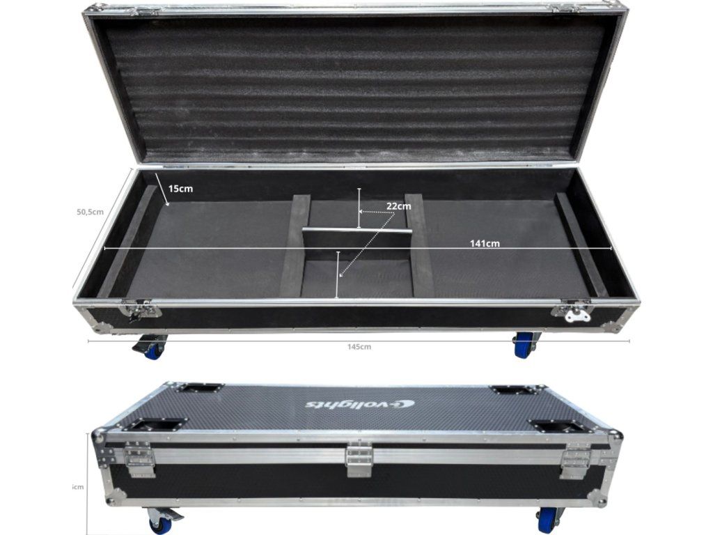Evolights predstavuje kvalitu, pohodlie pri používaní a konkurencieschopnú trhovú cenu. To isté platí aj pre tento prepravný box Lumen One Case 2in1. Jeho veko je proti nechcenému otvoreniu zaistené dvoma robustnými motýlikovými zámkami. Otvára sa jednostranne do zvislej polohy a vďaka vhodnému uhlu sklonu nepadá na používateľa, čo zaisťuje ľahký a pohodlný prístup k uloženému vybaveniu. Vnútri sa nachádzajú dve komory dokonale prispôsobené reflektorom. Vnútro kufra je vystlané mäkkou technickou penou, ktorá dokonale chráni uloženú techniku pred poškodením. Na bokoch kufra sú umiestnené pohodlné rúčky na ľahkú manipuláciu a na spodnej strane štyri otočné kolieska, z toho dve s brzdou.