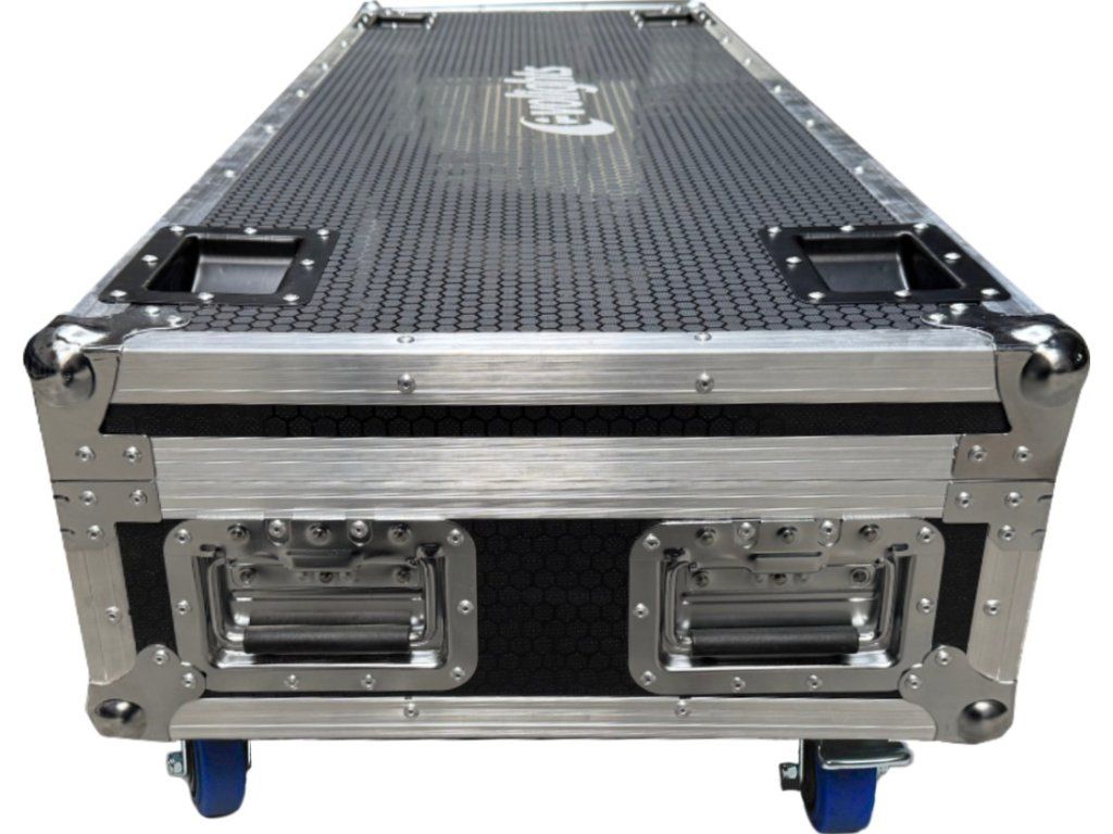 Evolights Lumen One Case 2in1 je profesionálny a veľmi solídne spracovaný prepravný box pre dva retro scénické reflektory Lumen One alebo iné zariadenia s podobnými rozmermi. Prepravný box je vyrobený zo silnej, 7mm preglejky lakovanej špeciálnou vodeodolnou farbou. Jeho hrany sú vystužené hliníkovými profilmi. Na rohoch sa nachádzajú chrómované guľové kryty, ktoré dodatočne spevňujú konštrukciu a chránia okolie kufra vďaka eliminácii ostrých hrán.