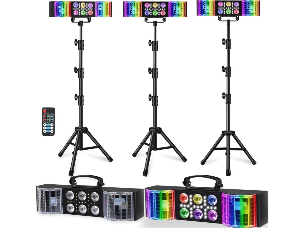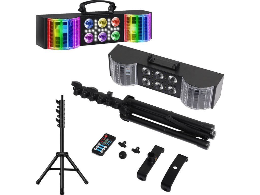 - Svetelný zdroj: PAR efekt: 6x4W RGBW LED 4v1, derby efekt: 6x3W RGB LED 3v1, efekt bieleho stroboskopu: 21x0.2W W SMD5050 LED
