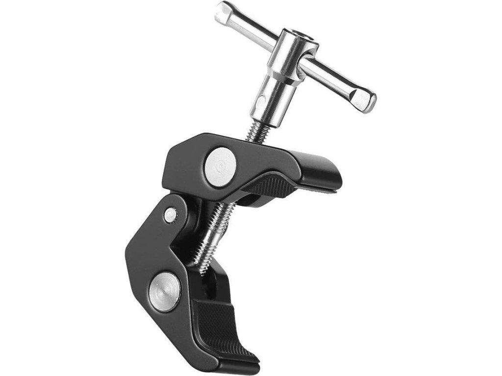 Univerzálny držiak vhodný pre vreckové rekordéry, outdoorové kamery, blesky, LED svetlá a ďalšie zariadenia, ktoré potrebujete na tvorbu AV materiálu. Držiak pripevníte prostredníctvom závitovej skrutky k tyči mikrofónového stojana s priemerom 10 až 50 mm. Na držiak môžete pripevniť ďalšie adaptéry so závitom 1/4", alebo 3/8".