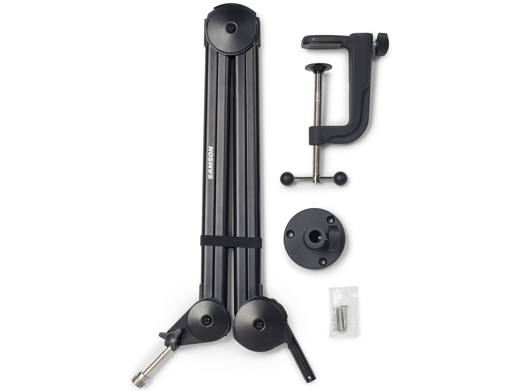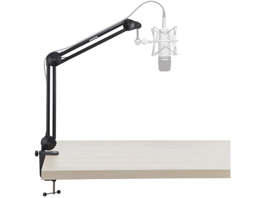 Variabilný mikrofónny stojan s ramenom s uchytením za dosku stola.