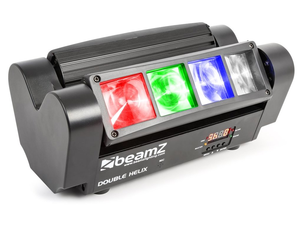 MHL820 double Helix je obľúbený LED efekt. Vďaka svojmu tvaru vytvára dvojitý lúč MHL820 v širokom rozpätí. 2 oddelené hlavy každá 4x 3W CREE LED sa budú otáčať samostatne pre úžasný svetelný efekt. Oba kanály poskytujú stroboskopický efekt. Ideálne pre použitie ako predné svetlo na pódiu, diskotékové inštalácie, mobilné aplikácie atď.