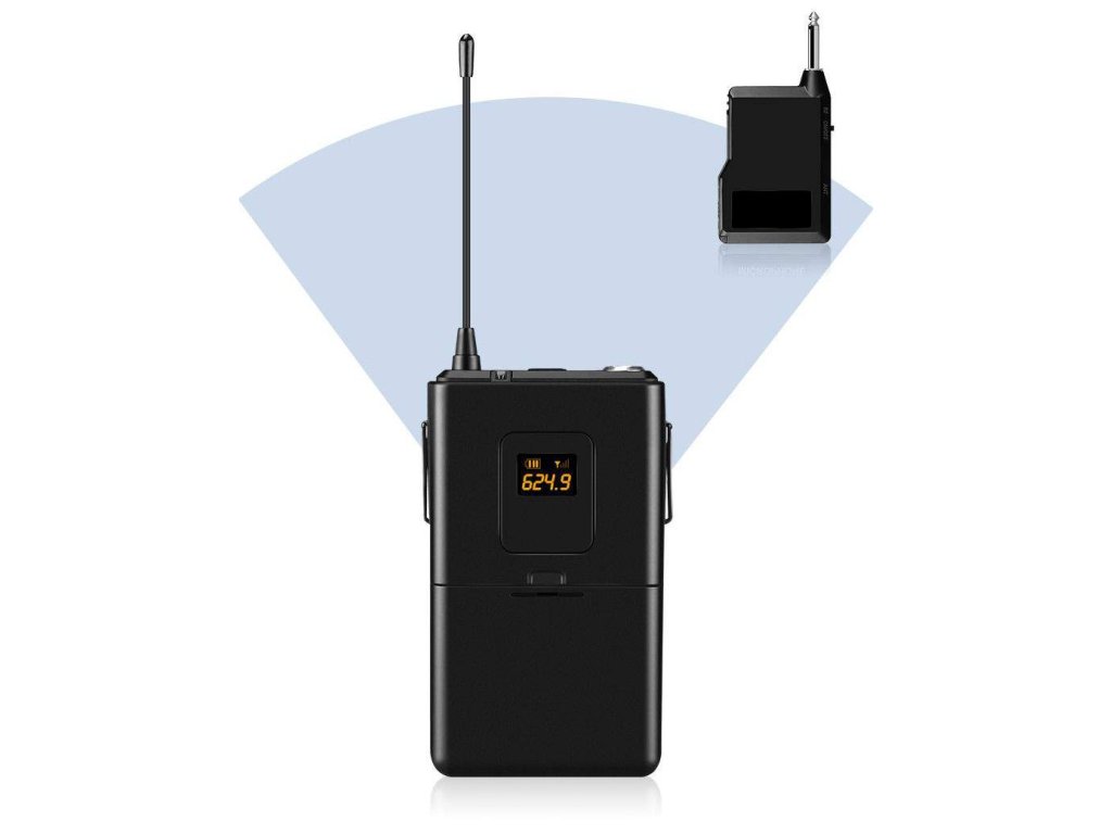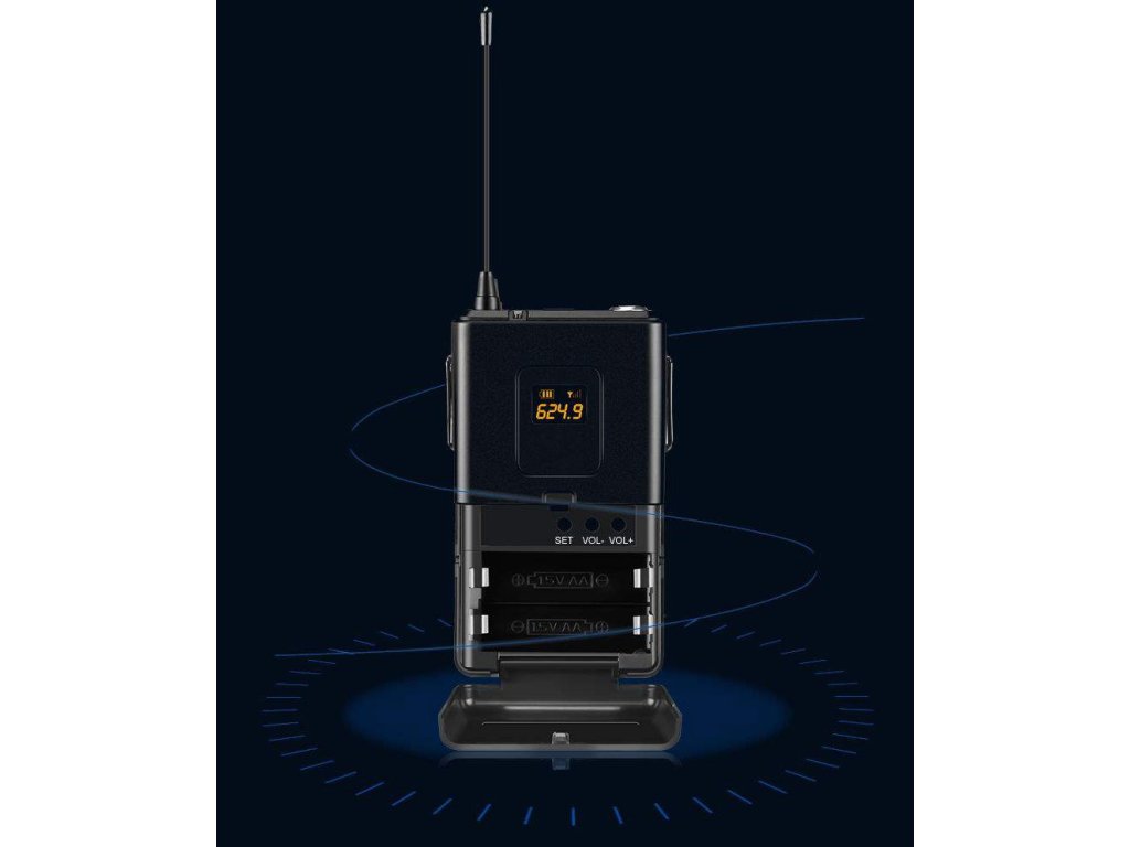 Bezdrôtový systém s klopovým a náhlavným mikrofónom od Mozos je vhodný na natáčanie reportáží, podcastov a rozhovorov, turistických sprievodcov, lektorov, alebo prednášajúcich. Mikrofóny s guľovou smerovou charakteristikou vám zaistia krištáľovo čistý prenos vášho hlasu na vzdialenosť až 50m. Súčasťou balenia je vysielač, prijímač, lavalier mikrofón, náhlavný mikrofón, klipsne a dva protiveterné kryty. Prijímač je napájaný prostredníctvom dvoch AAA batérií, vysielač potom cez dve AA batérie. Batérie nie sú súčasťou balenia.