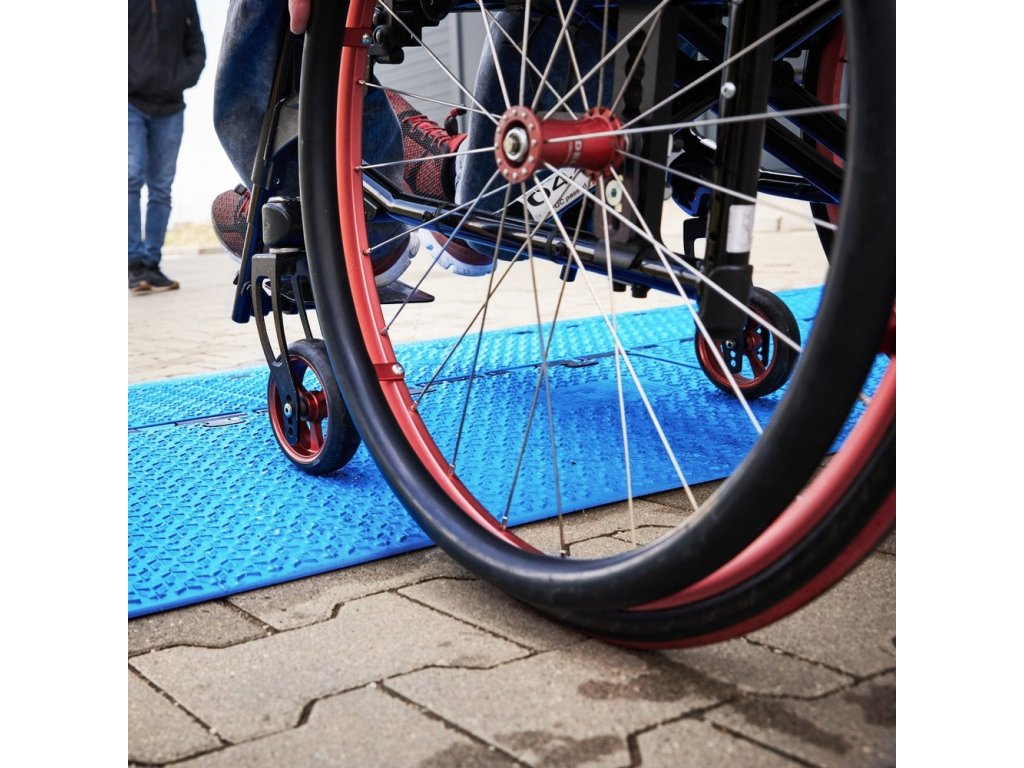 Najmä otázka prístupnosti je pre organizátorov a úrady v posledných rokoch čoraz dôležitejšia. Pri konvenčných systémoch káblových prejazdov bolo často nutné robiť kompromis medzi bezbariérovým prístupom a splavnosťou. Veci sú iné s novým DEFENDER® 2D M: Ku každej strednej časti je pripevnená úplne prejazdná rampa vhodná pre vozíčkarov so sklonom 6°. Nosnosť rampy zodpovedá strednej časti a je cca 5 ton na plochu 25 x 30 cm. Plochý sklon výrazne uľahčuje prístup pre vozíčkarov, ale tiež výrazne uľahčuje jazdu vysokozdvižných vozíkov a nákladných vozidiel cez káblové prejazdy.