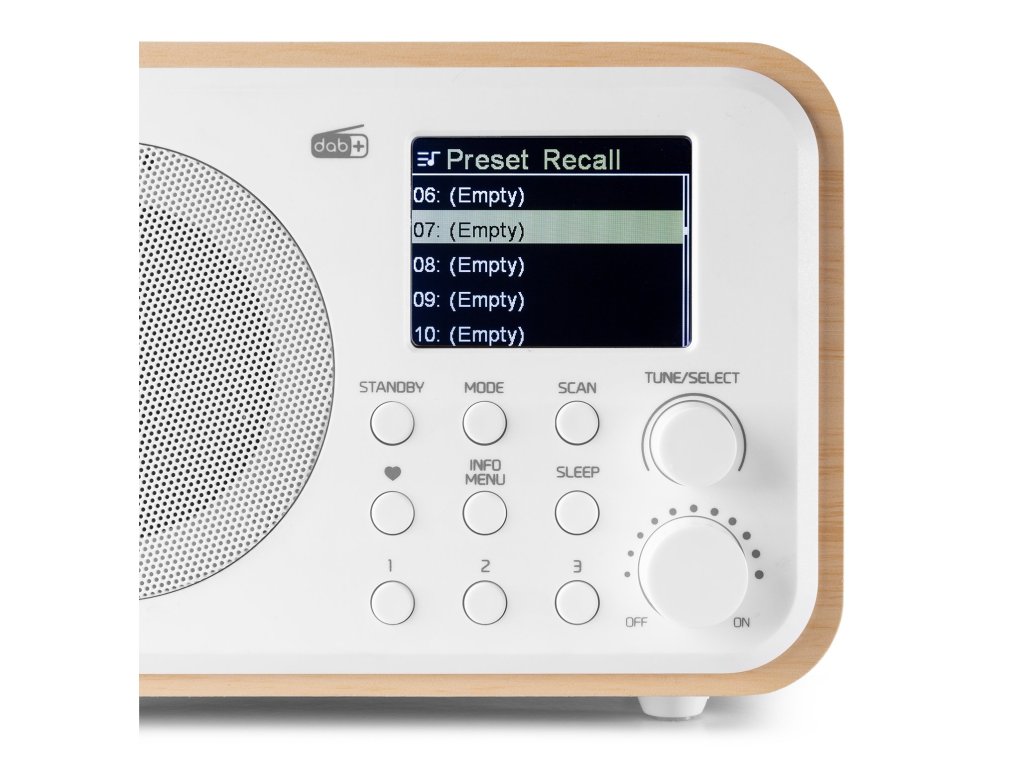- 20 prednastavených staníc na DAB+ a FM