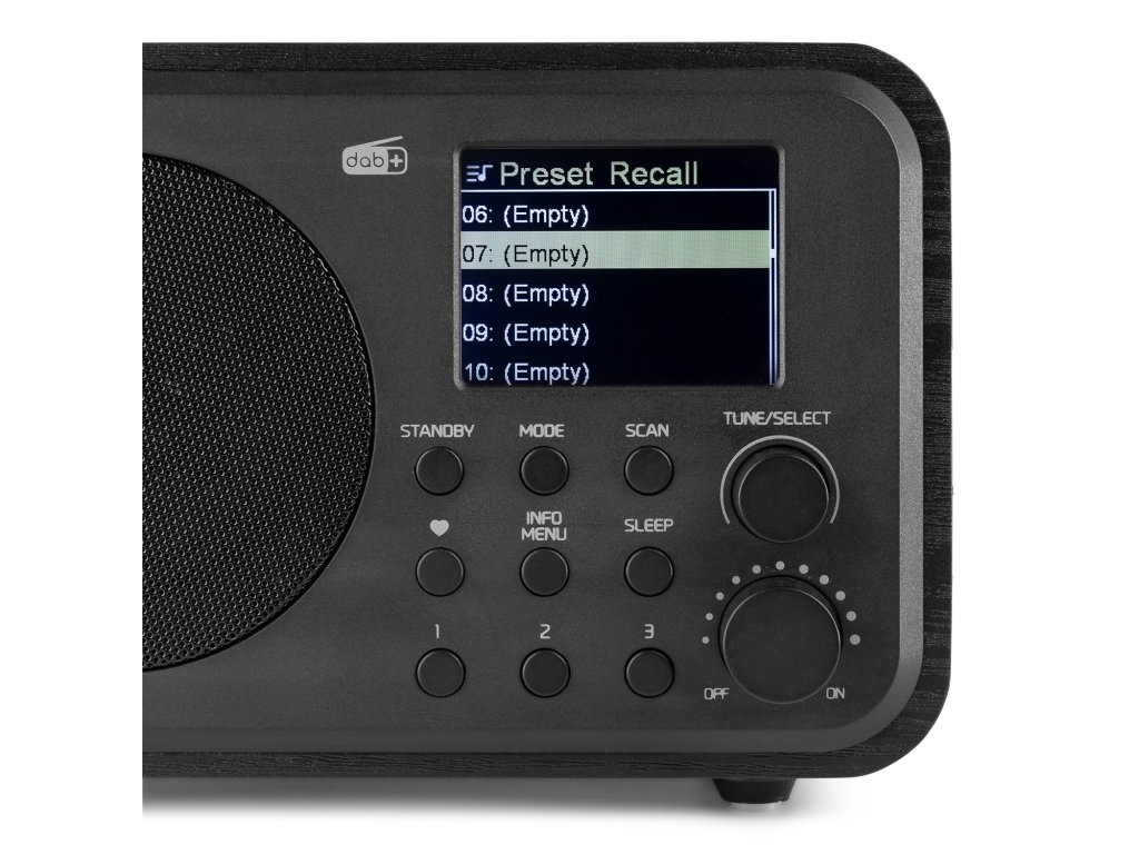 - 20 prednastavených staníc na DAB+ a FM
