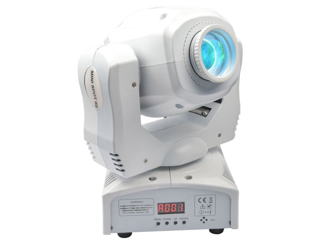Kompaktná a profesionálna pohyblivá hlava spoločnosti LIGHT4ME. Zariadenie prináša výkon 60 W a je vybavené kolesom so 7 farbami a gobo kolesom so 7 vzormi. Dosahuje farebnú teplotu okolo 8000 K. Prevádzkové režimy Auto, Zvuk, Master / Slave, DMX.