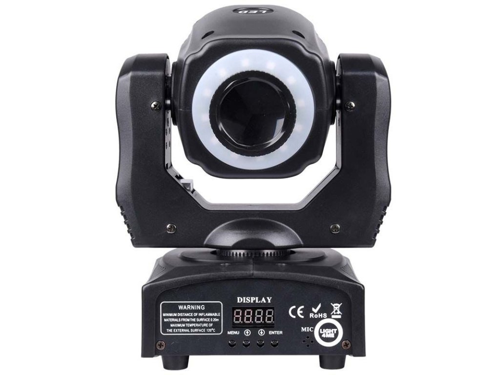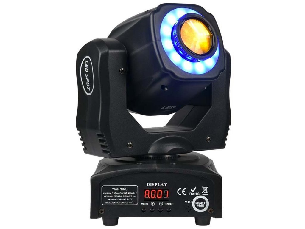 Pohyblivá hlava Light4Me Mini Spot 60 Ring je vybavená bielou LED s výkonom 60 wattov a svetelným prstencom skladajúcim sa z 12 RGB LED diód obklopujúcich hlavnú šošovku. Na farebnom kolese je 7 filtrov, ktoré farbia svetlo. Reflektor umožňuje žiariť plnou farbou alebo vytvárať polofarby zo susedných farieb. Gobo koleso poskytuje 7 moderných vzorov tvarujúcich svetelný lúč. Veľkou výhodou je tiež hranol, ktorý sa rozdelí na 3 časti. Dokonalú ostrosť zaisťuje manuálny zoom, ktorý umožňuje precízne zaostriť okraje svetelného bodu.