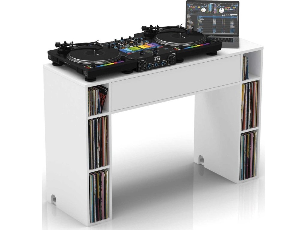 Glorious Modular Mix Station je štýlový DJs stôl na uskladnenie viac ako tristotridsať 12" a 7" LP platní. Police sú prispôsobené rozmerom hudobných nosičov a na hornú dosku môžete navyše umiestniť aj veľký DJ pult s laptopom. Predná doska je zakrytá výklopným vekom, vkusne tak schováte vašu všetku kabeláž a príslušenstvo. Modular Mix Station skvele poslúži ako dizajnový nábytok do moderne vybavenej domácnosti alebo ako DJ stôl pre studio session alebo live perfromance. K dispozícii v odtieňoch bielej a čiernej.