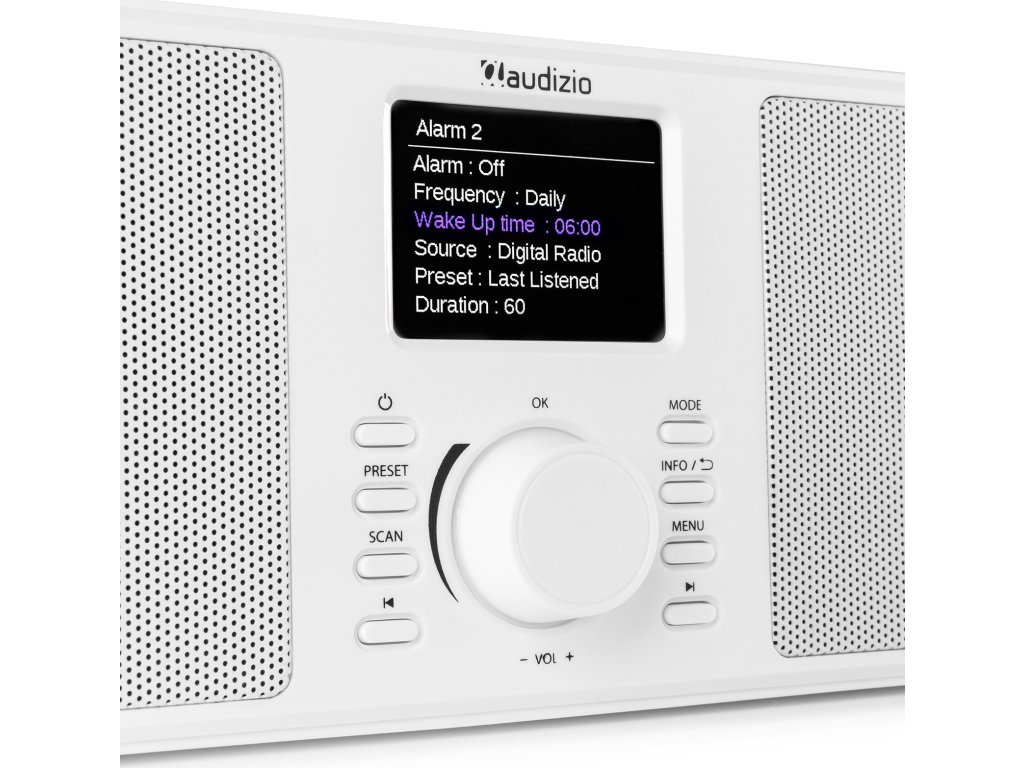 - Duálny alarm: Prebudenie DAB/FM/BUZZER